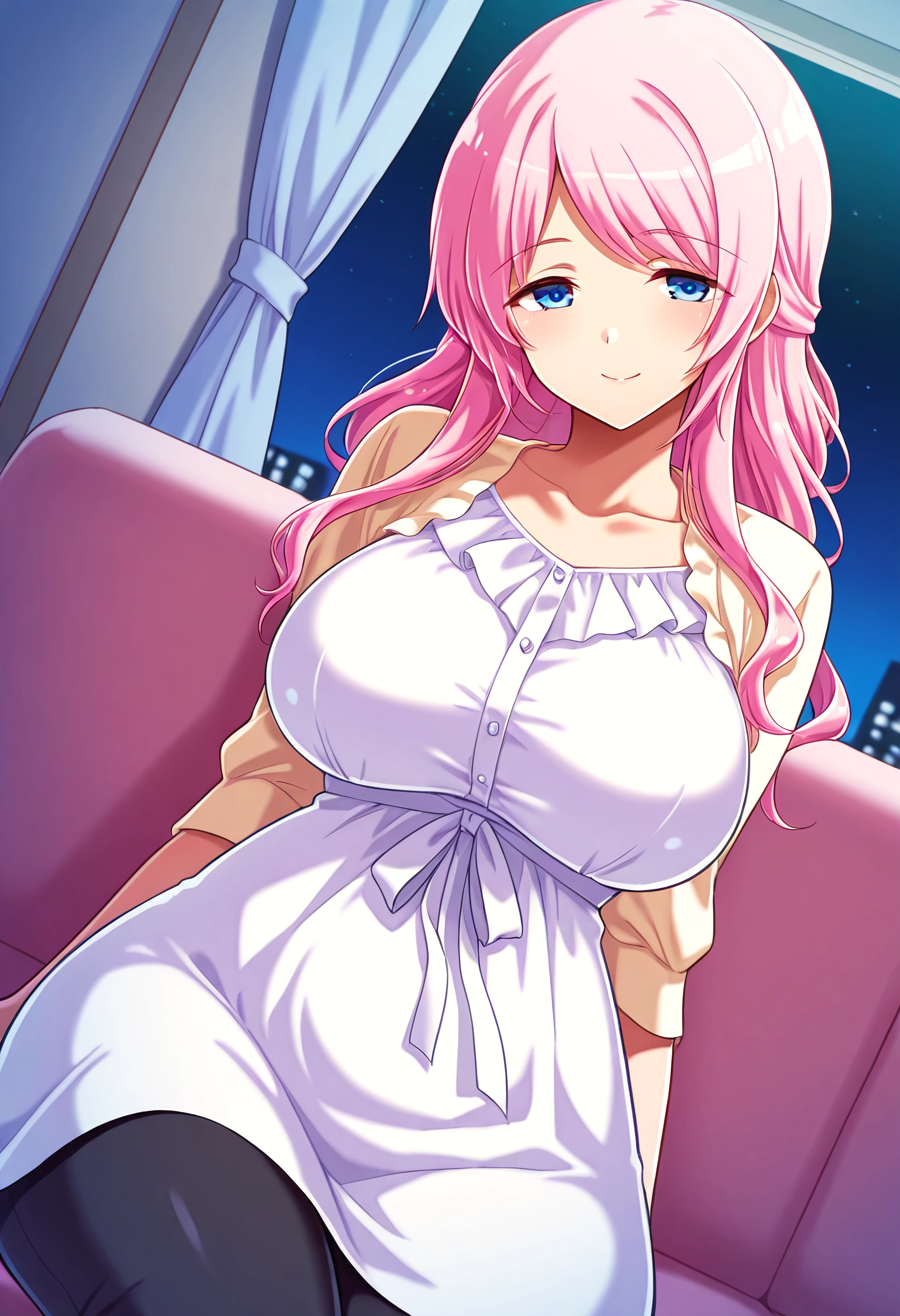 Prompt: MashibaMayuko, 1girl, pink hair, blue eyes, small mole under right eye