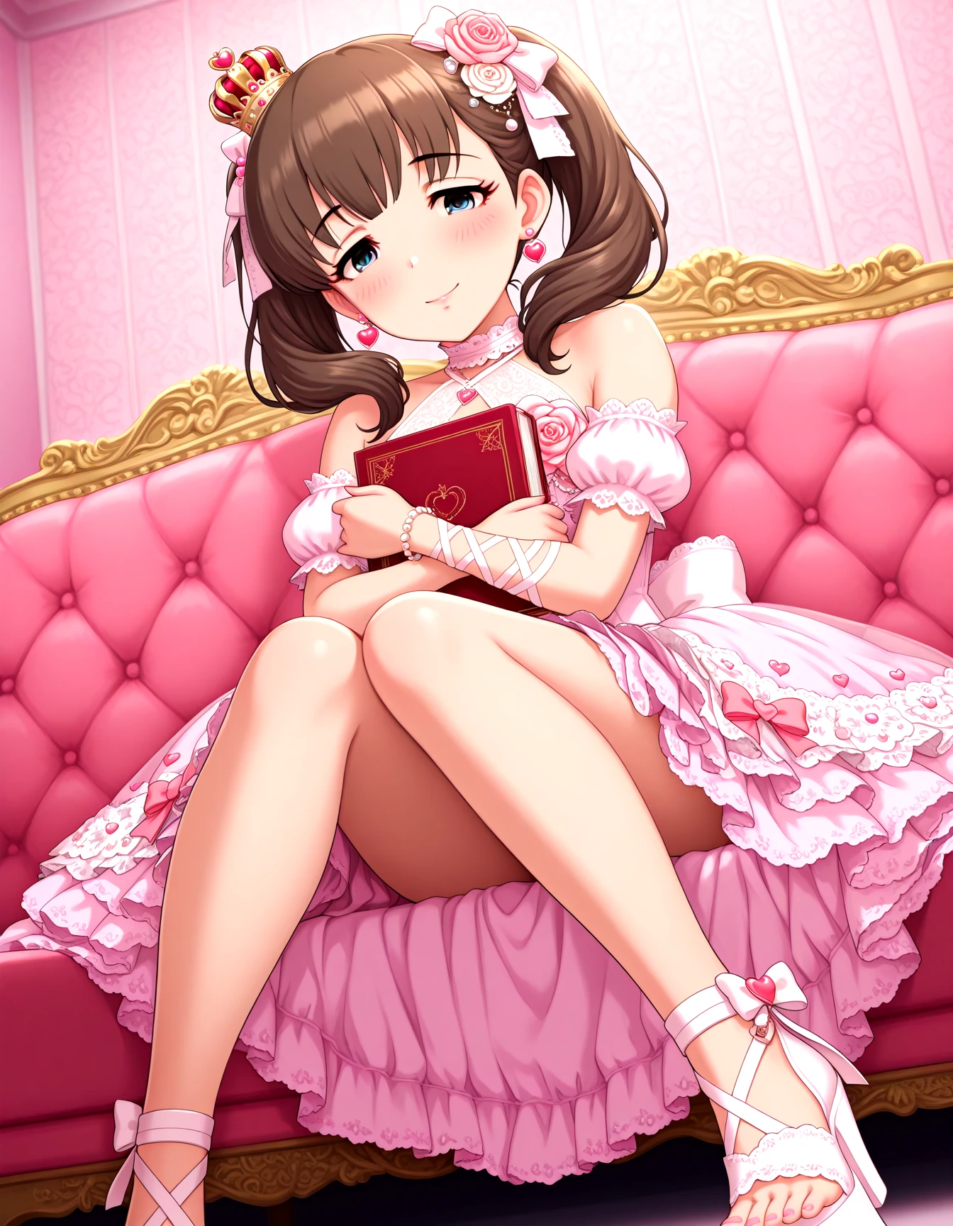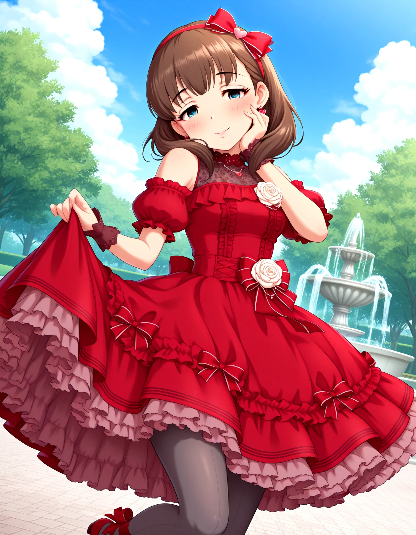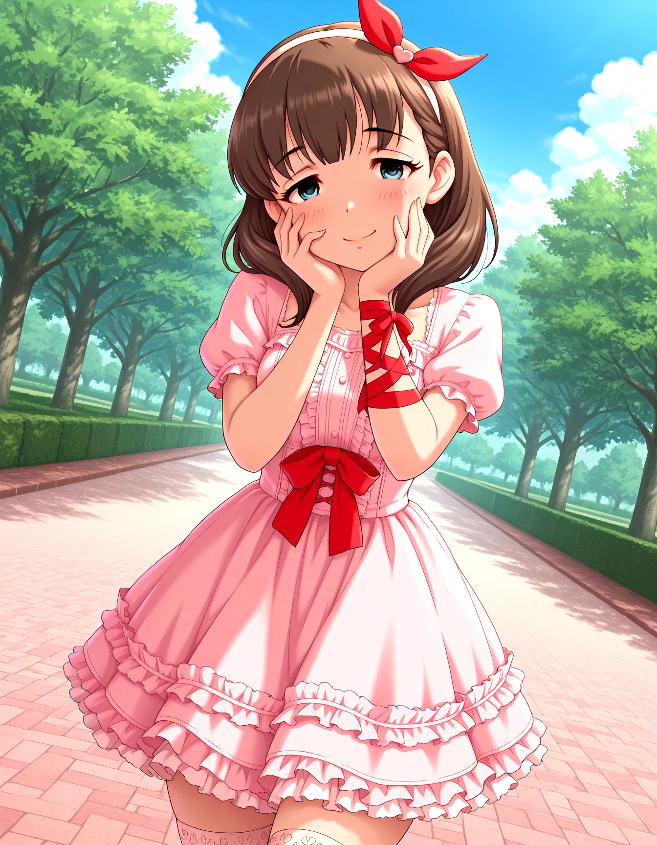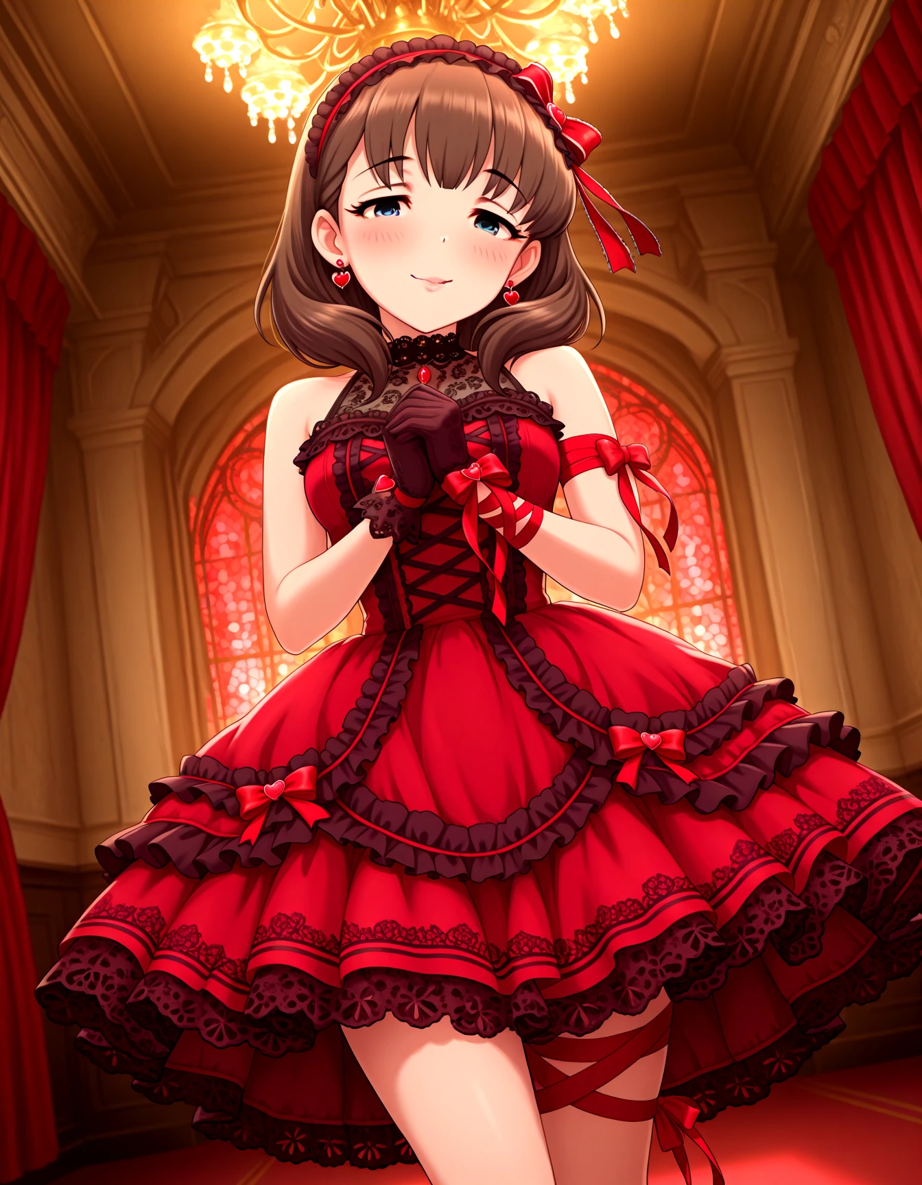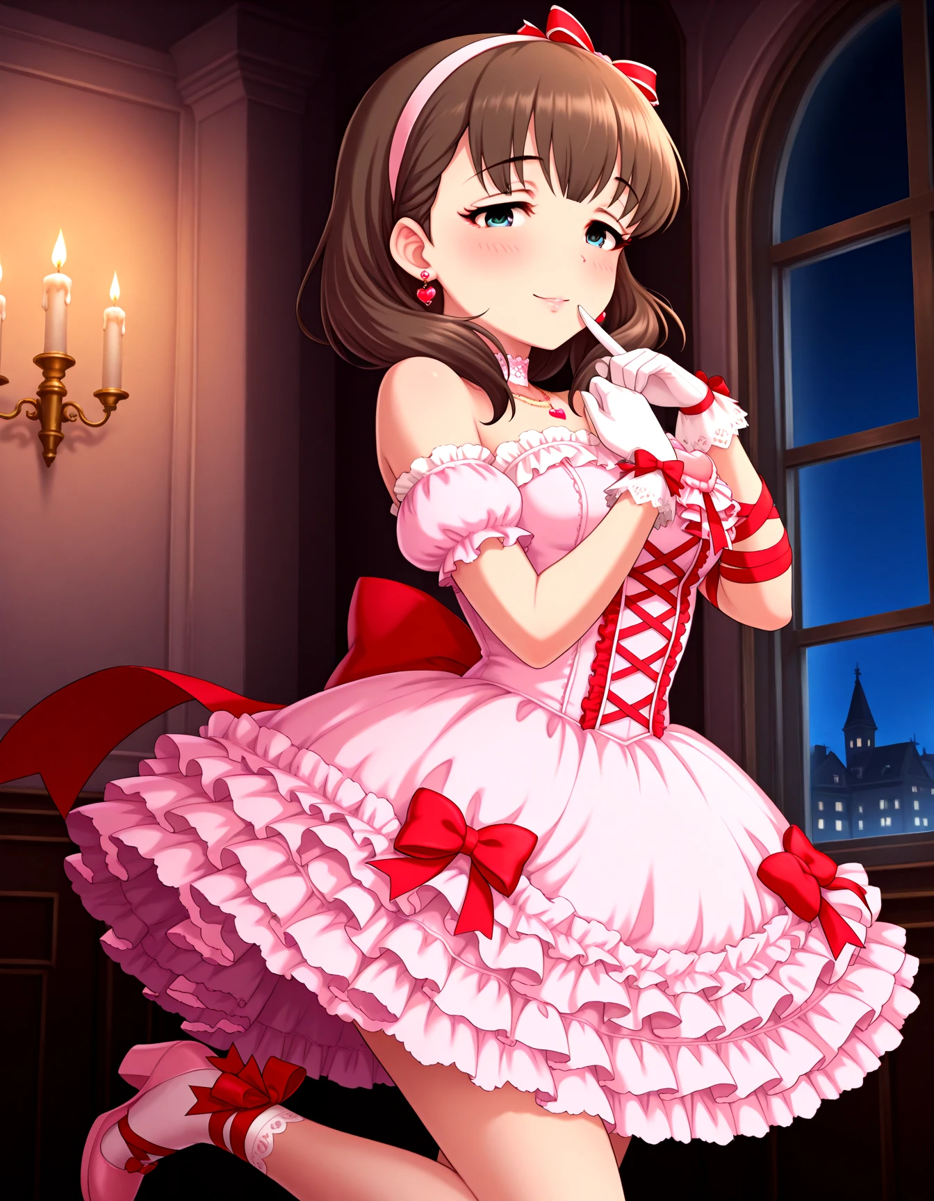 Sakuma_Mayu_Cinderella, blue eyes, brown hair, ribbon, short hair,