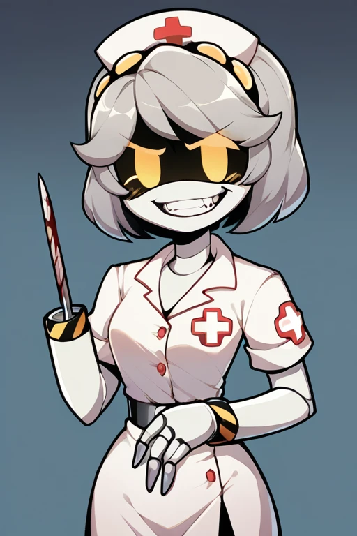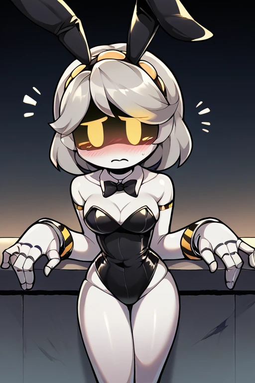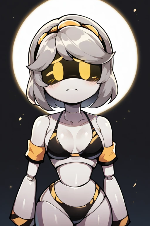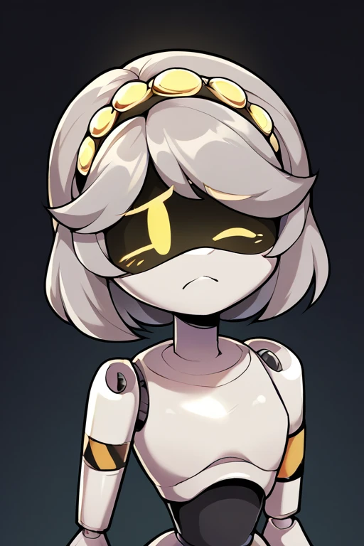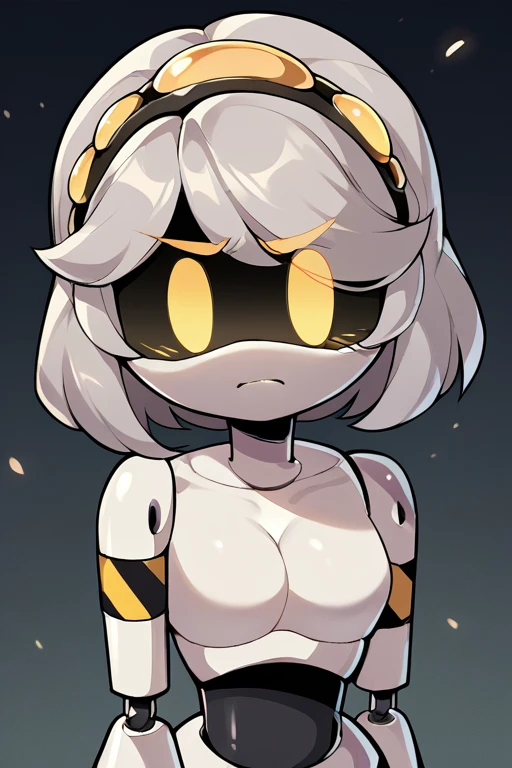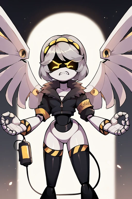 sdV, Grey Hair, Yellow Eyes, Robot, Visor, Tail, Black Jacket, Fur Trim, Thighhighs