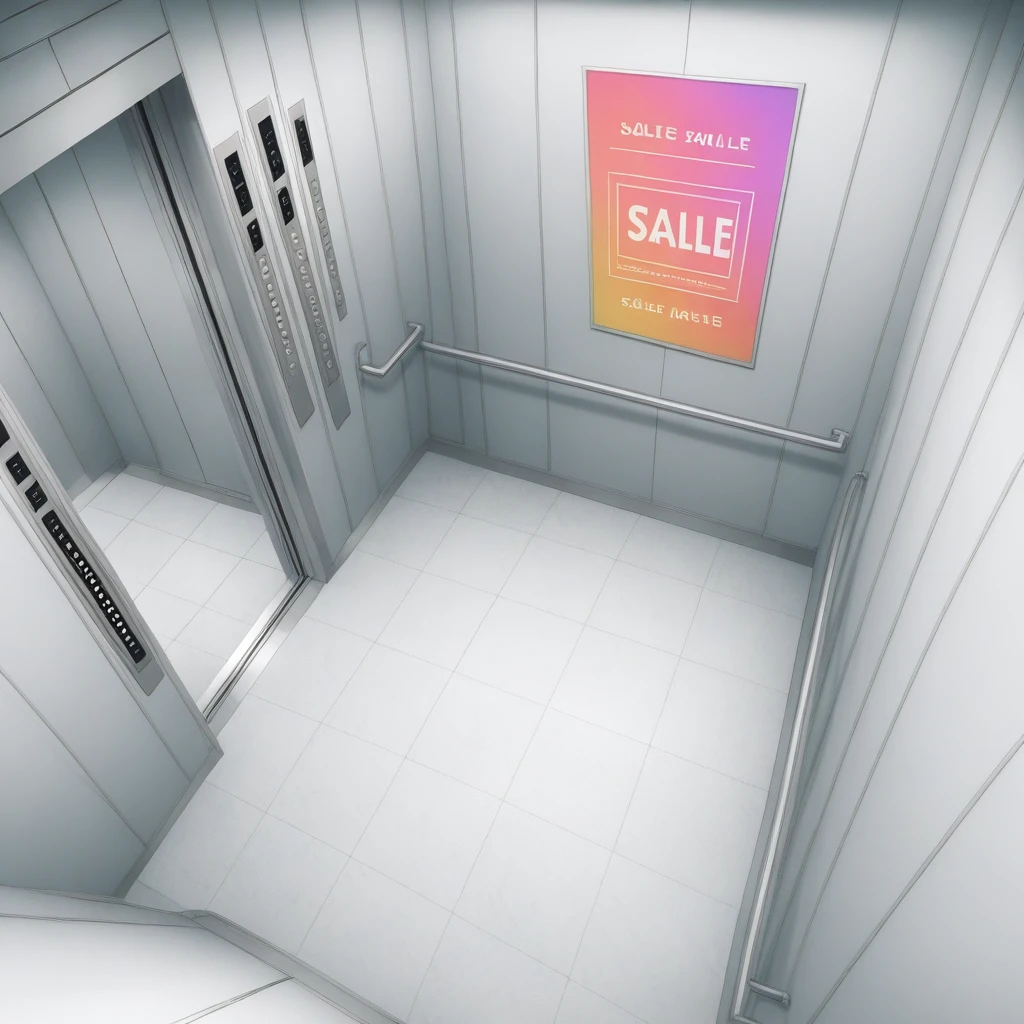 elevator_ceiling_view, elevator cabin, ceiling top-down view, accurate perspective,