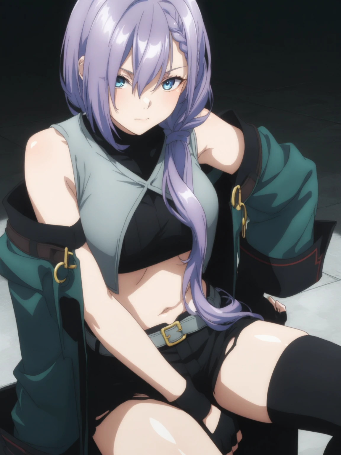 Character: (LunaCheat, blue eyes, purple hair, braid, hair over shoulder)
