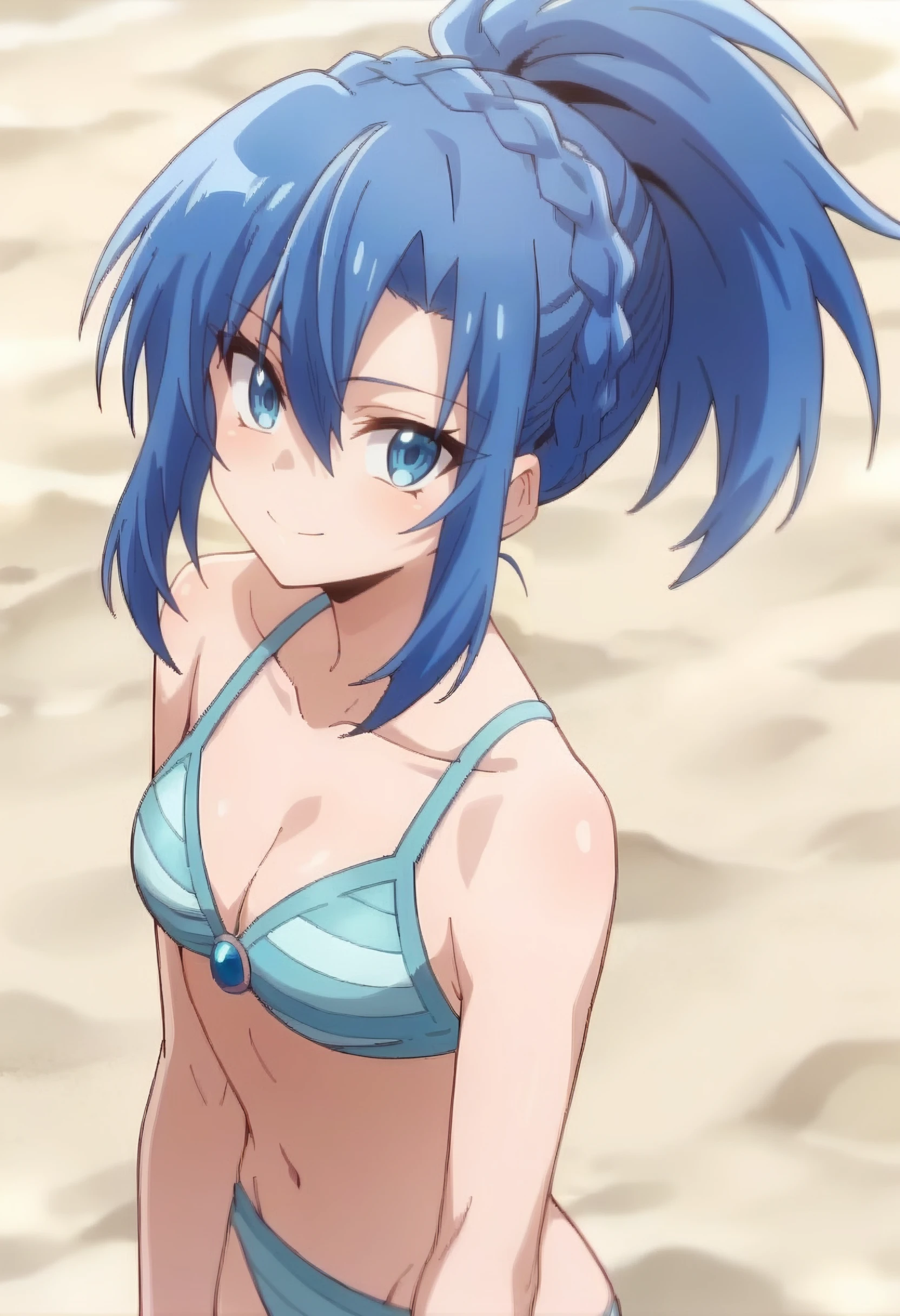 lilia, blue_hair, 1girl, blue_eyes, solo, ponytail, braid, hair_between_eyes , smile , long_hair,
