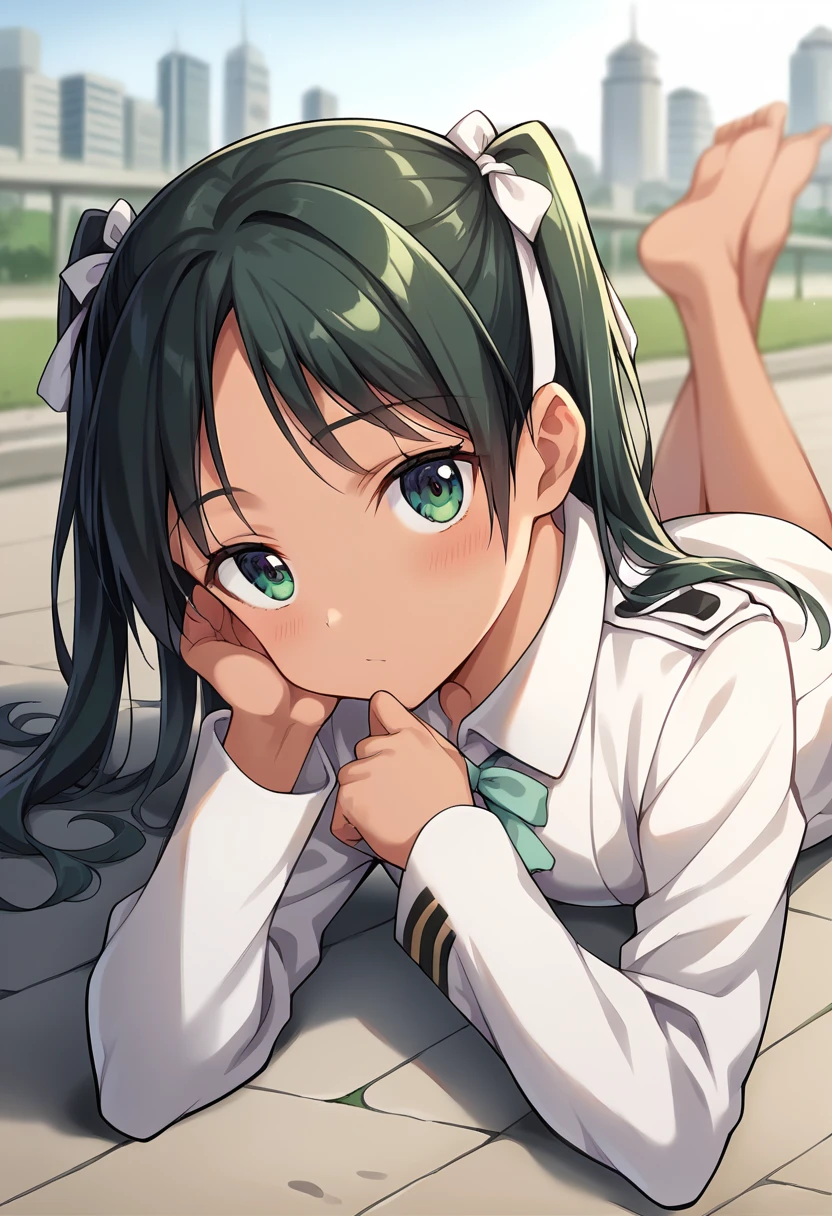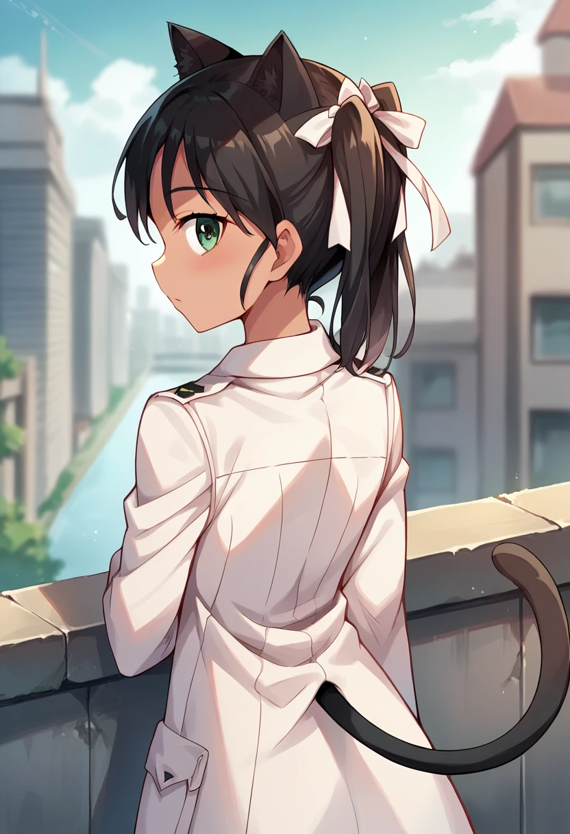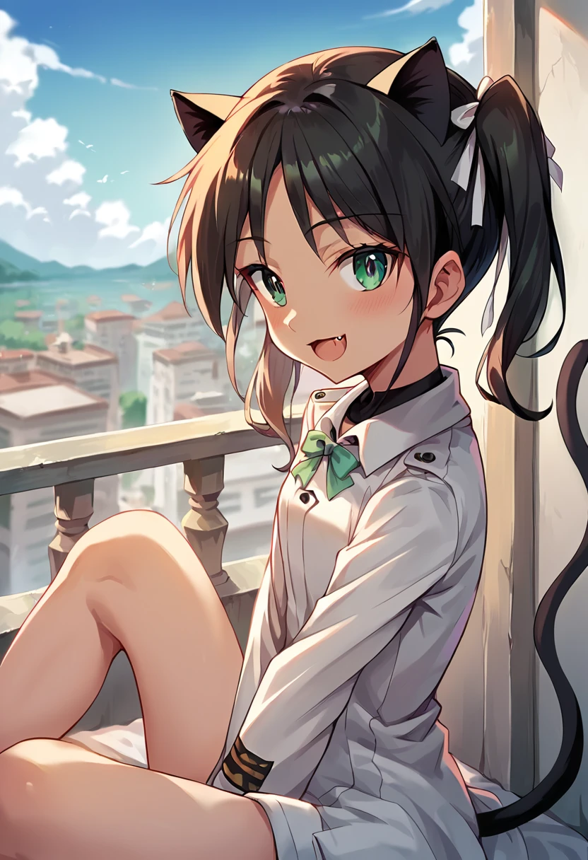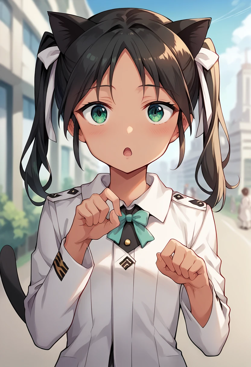 score_9, score_8_up, score_7_up, source_anime, masterpiece, 1girl, ctianfranc3sca, (tan:0.3), white uniform, white ribbon, neck ribbon, facing viewer, looking at viewer, outdoors, sunny, day, city, depth of field, striped panties,Negative prompt ❌: