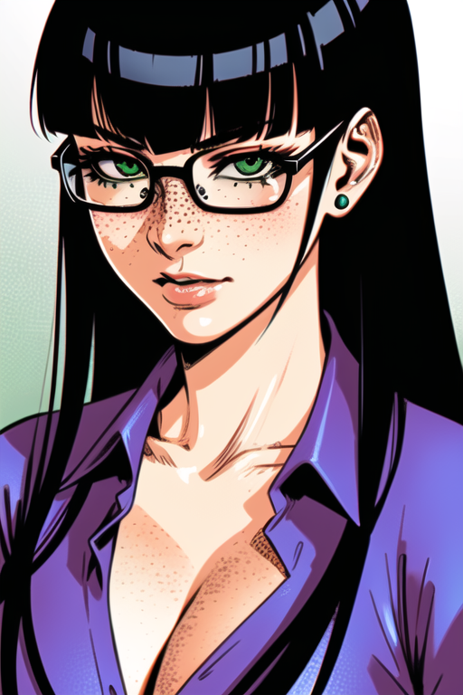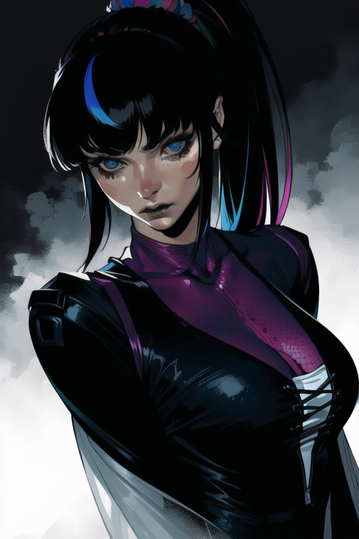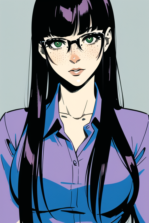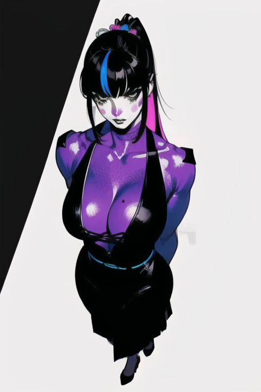 Skews towards her purplish style of clothing generally, so if you do not wish to get her outfit then you will have to try to prompt that out.