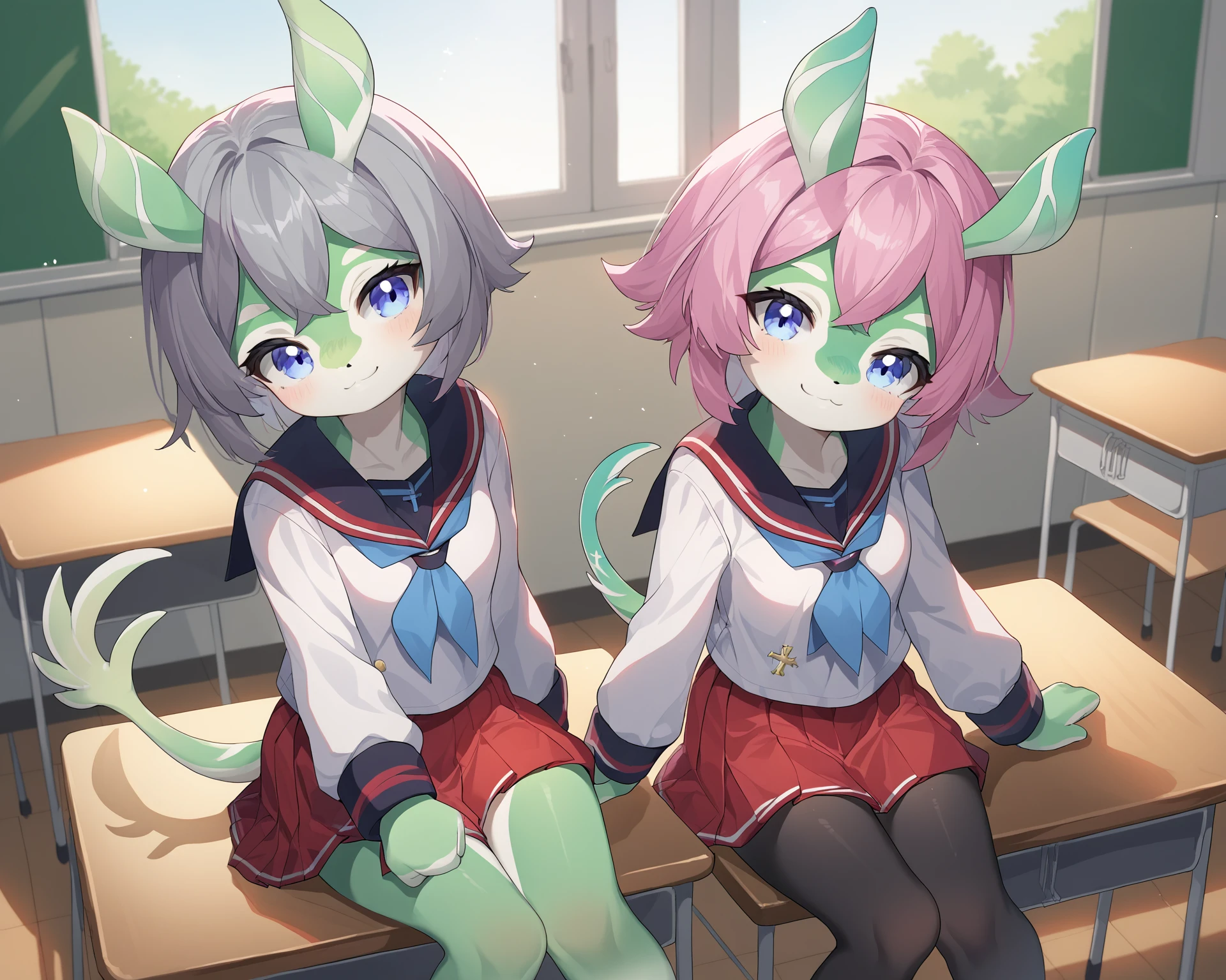 Higher consistency in melusine traits as the primary goal of version 2. The secondary goal was training in the in-game colors/hair styles/body types/patterns/etc well enough to be able to reproduce any canon melusine from the game with a high rate of accuracy. As such, most of the training data was tagged with specific terms for skin colors, hair color/styles, and clothing. The general tags for matching are: