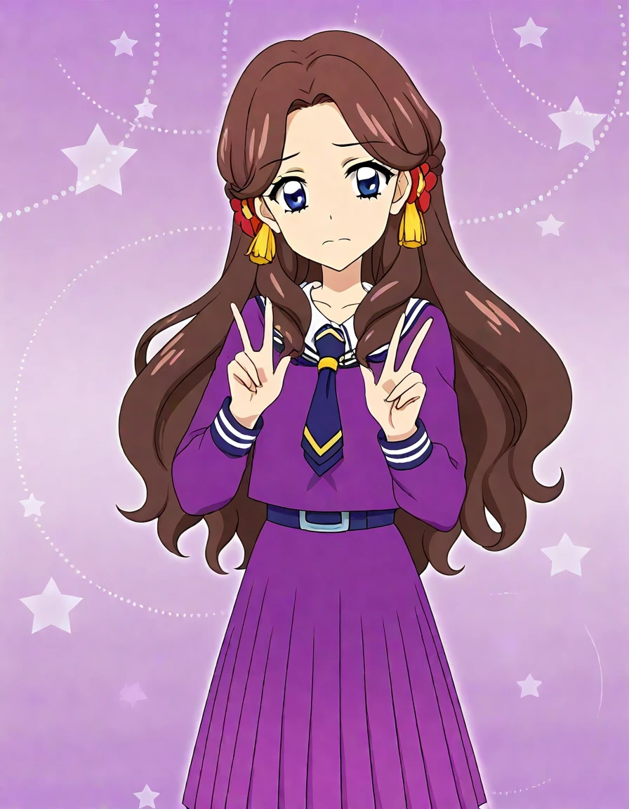 school uniform, purple serafuku,long sleeves, purple long skirt, blue necktie, belt,