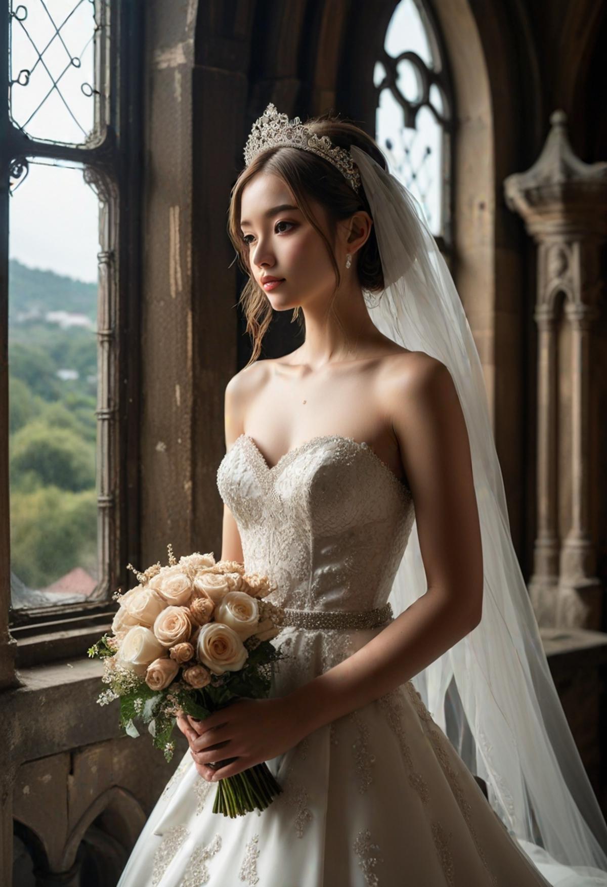 __cf-bride/prompt-full__ : prompt the bride costume with girl and location