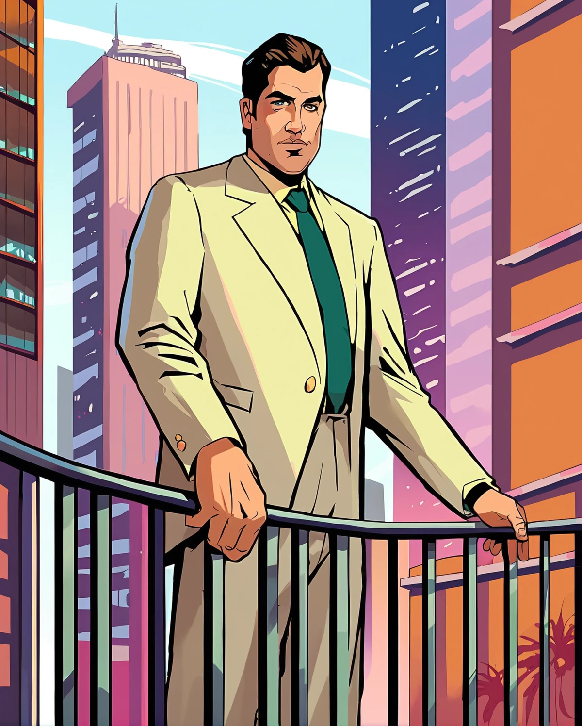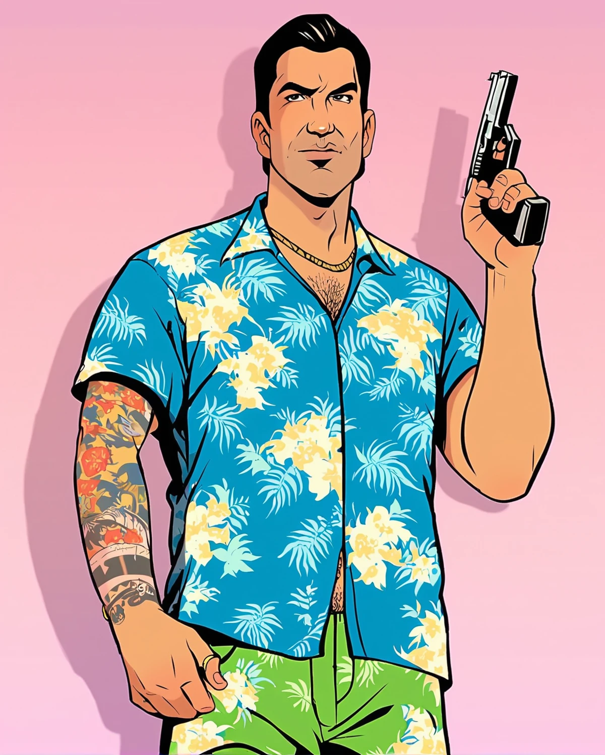 This Lora was Trained on images and official artworks from the game: GTA Vice City