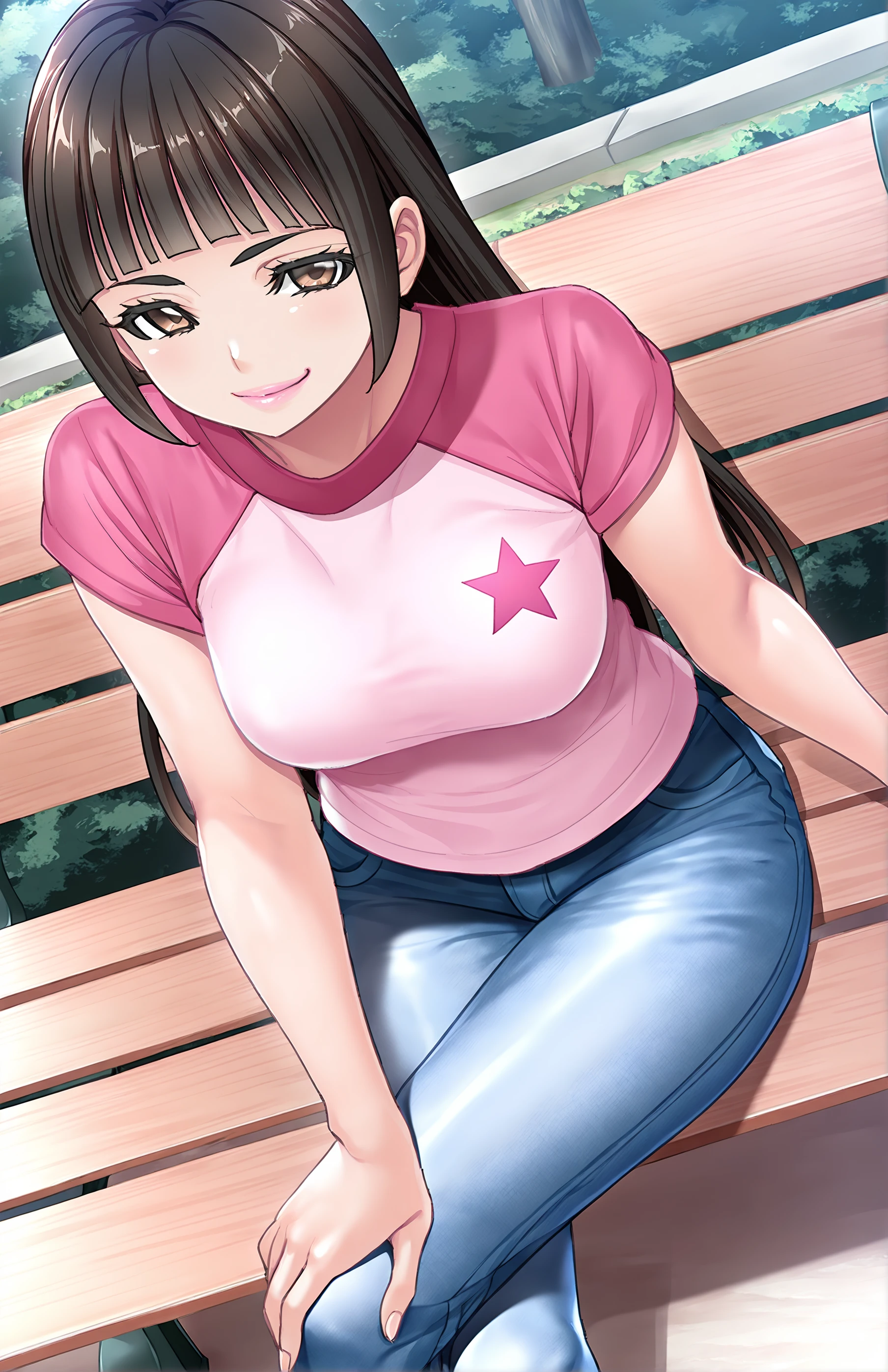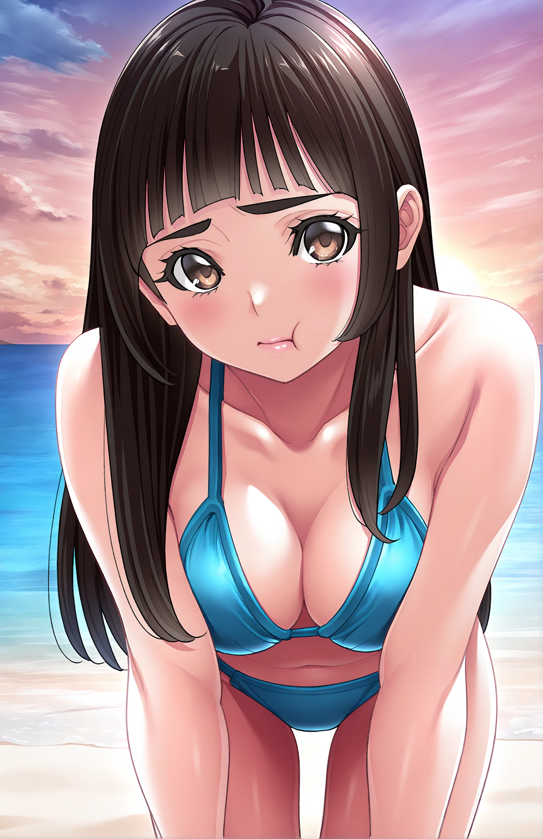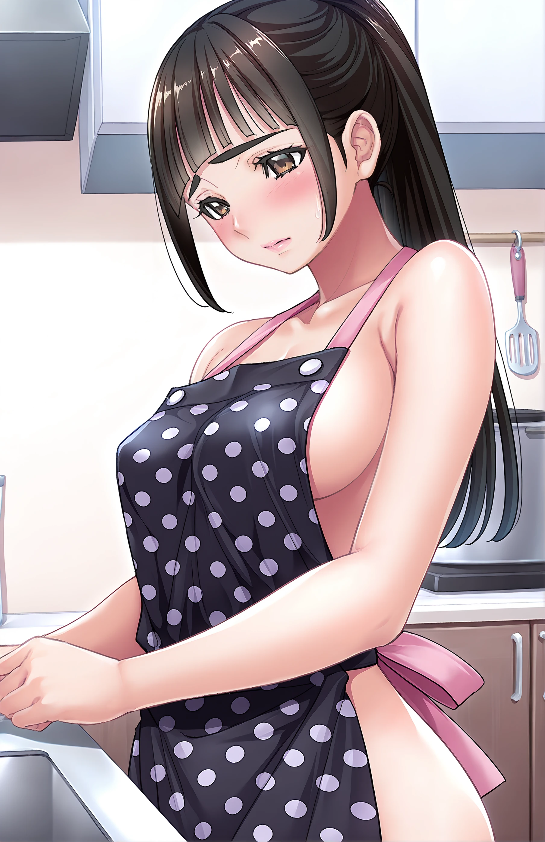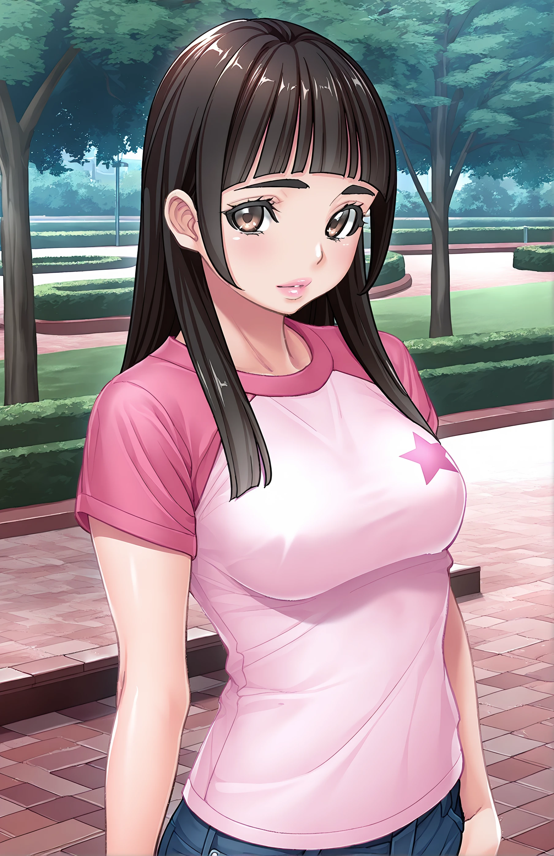 AsouMayumi, lips, long hair, breasts, black hair, brown eyes, medium breasts, blunt bangs
