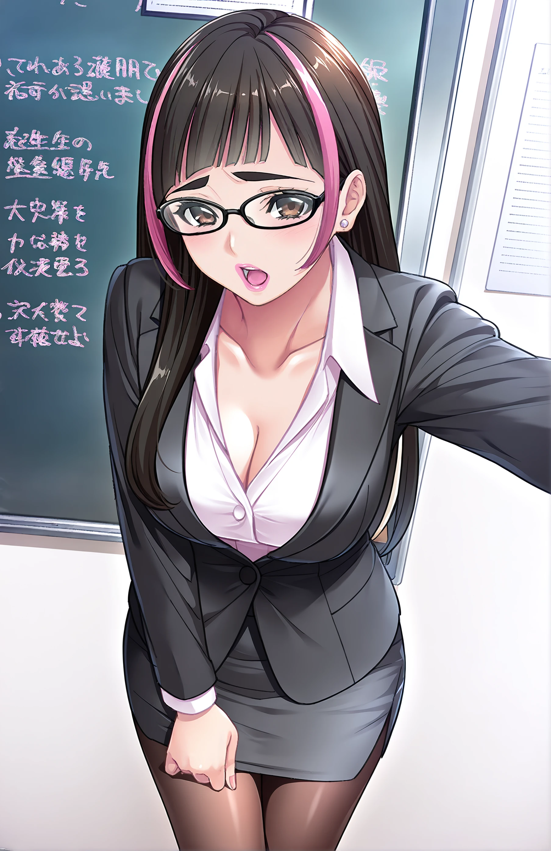AsouMayumi, long hair, breasts, medium breasts, black hair, brown eyes, pink hair, multicolored hair, two-tone hair, lips, lipstick, makeup, streaked hair