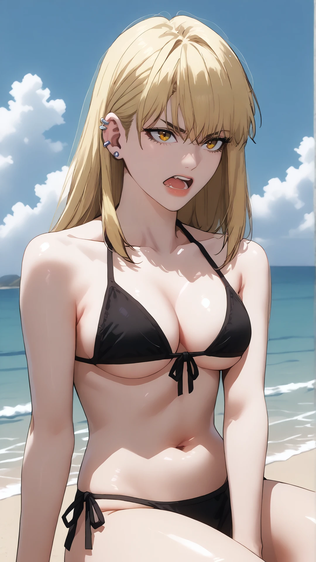 blonde hair, yellow eyes,