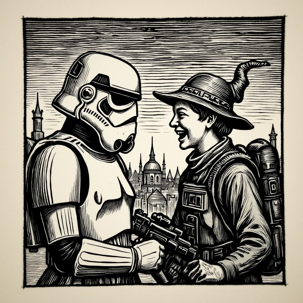 This LoRA helps you create images in the style of 15th century western European folio illustrations. At that time, etched illustrations like this would be often included in pamphlets / folios to make them more fun to read.