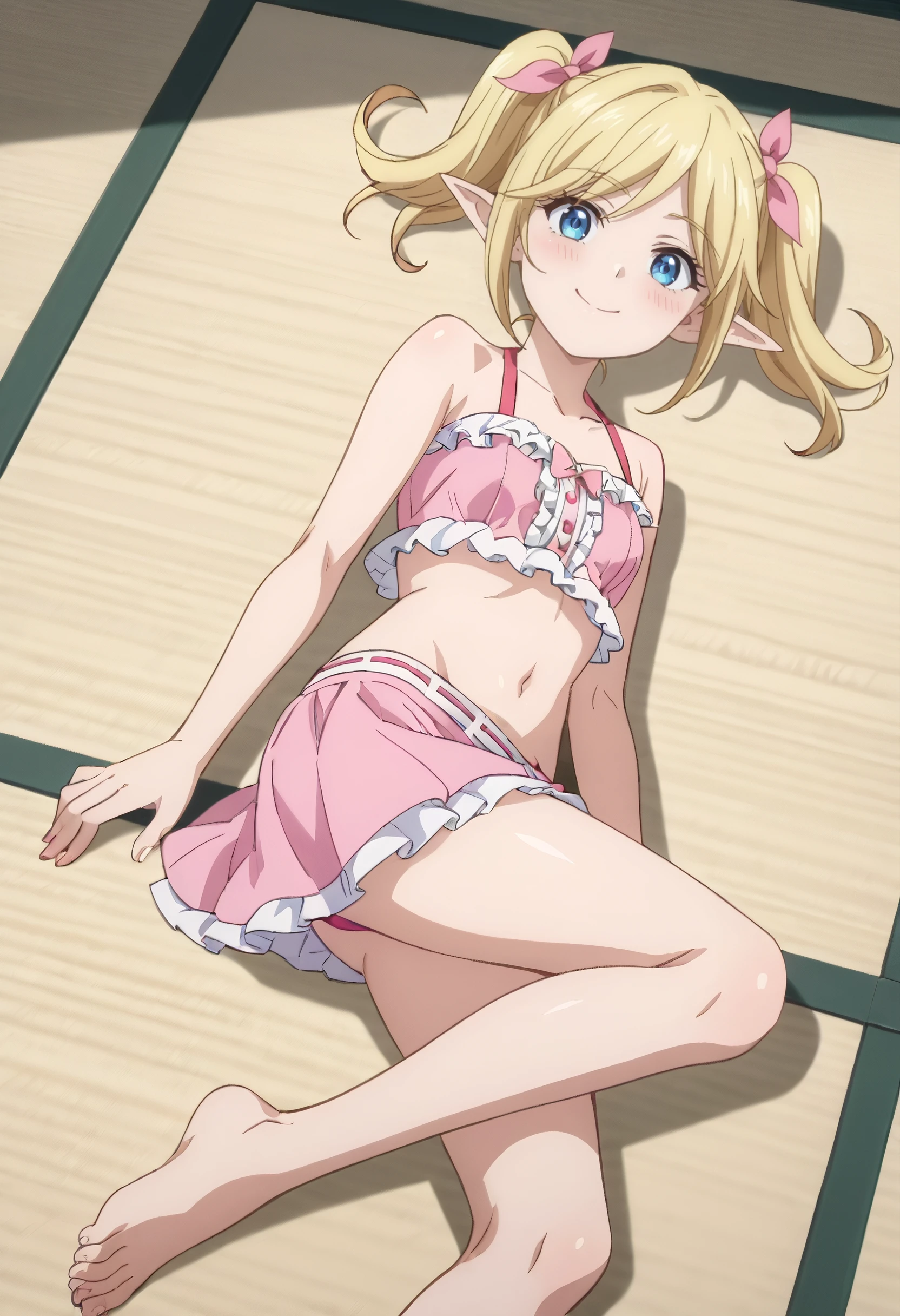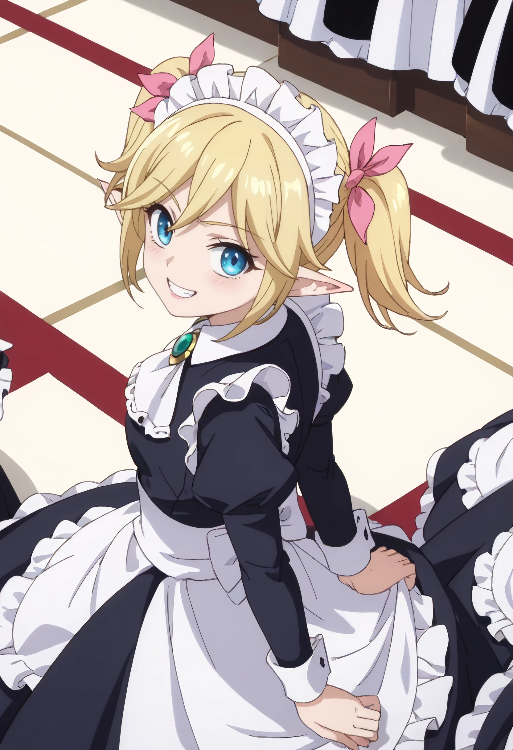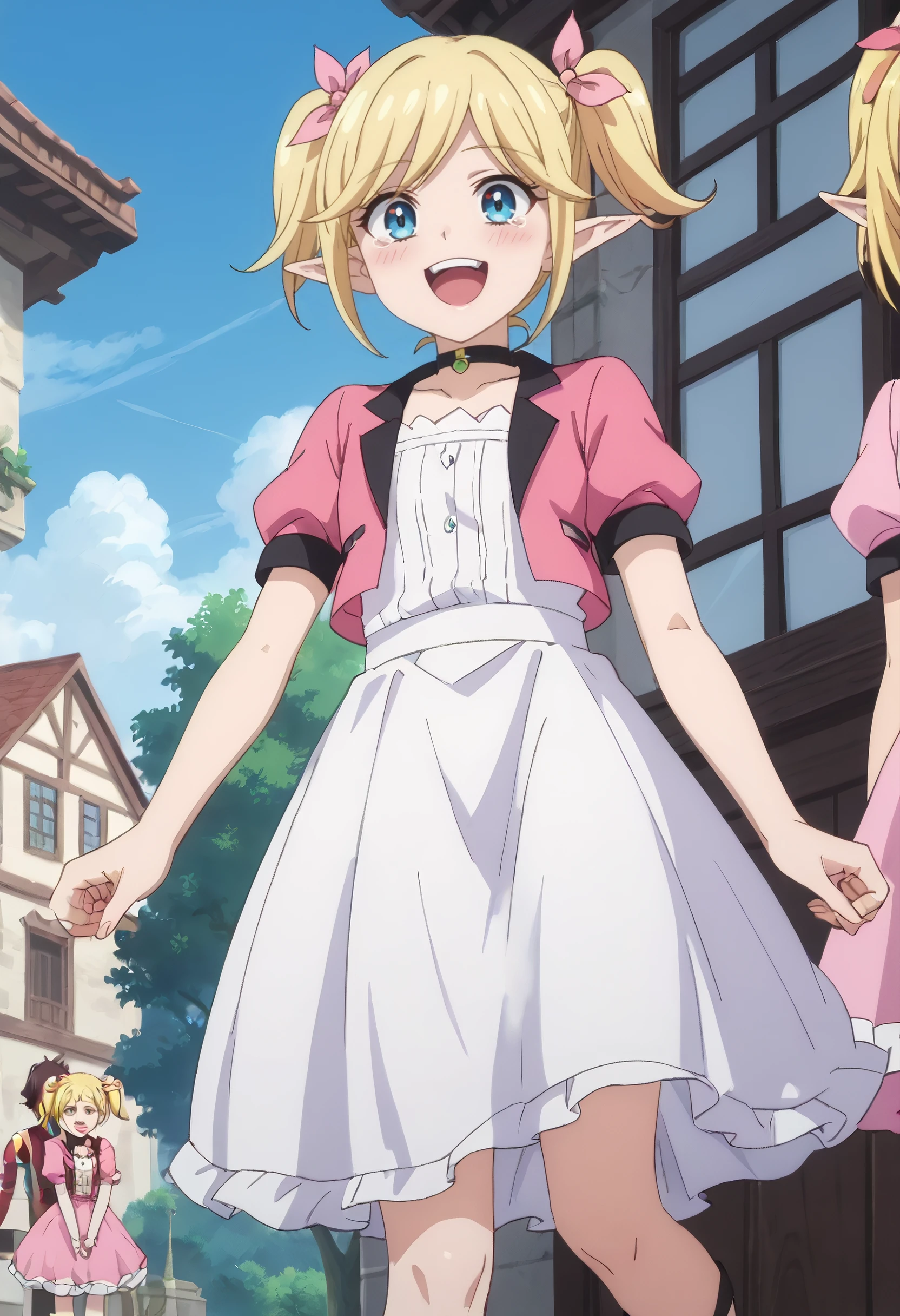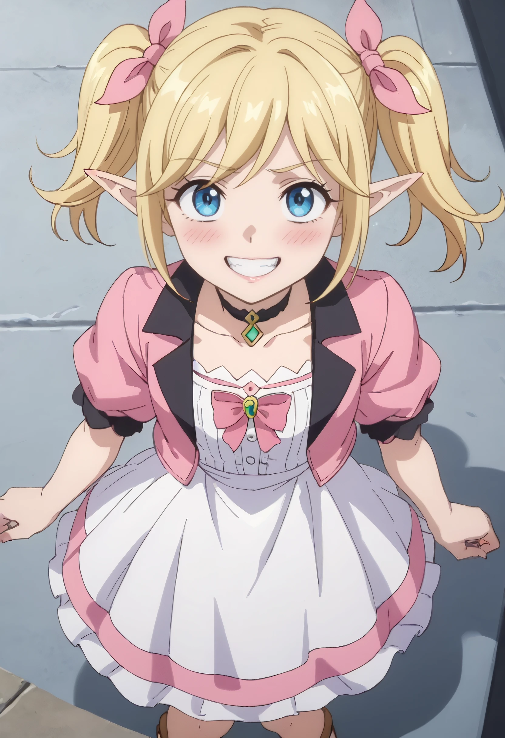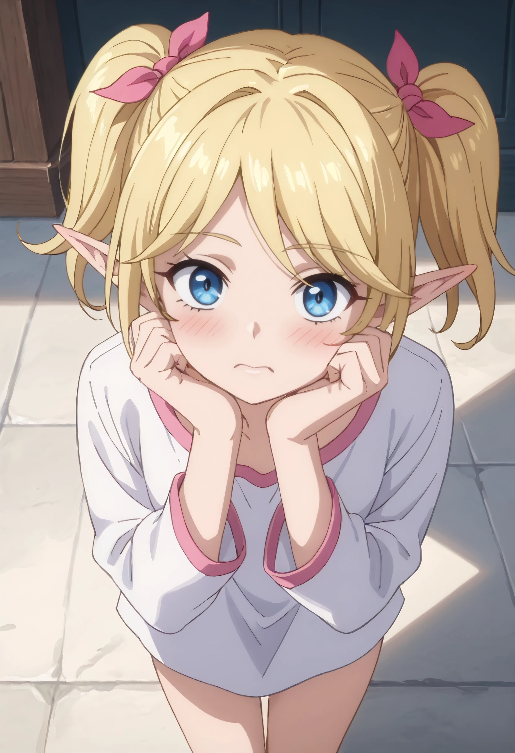 BYNSusie, elf, blonde hair, blue eyes, long hair, pointy ears, twintails, short twintails, long pointy ears,