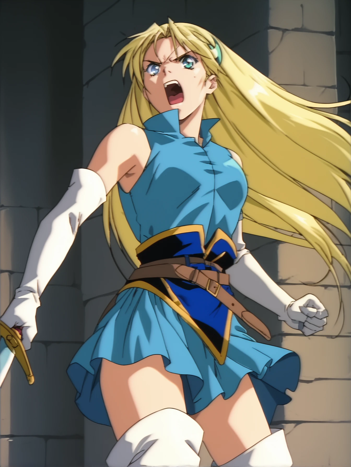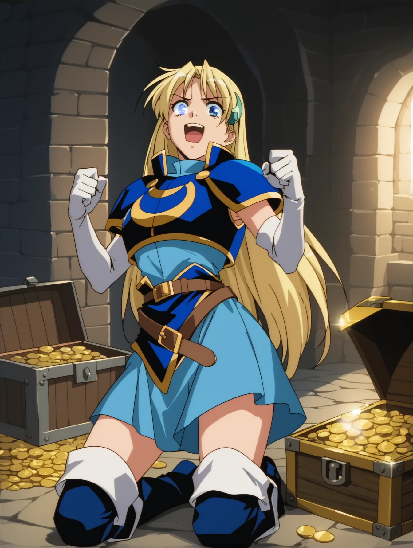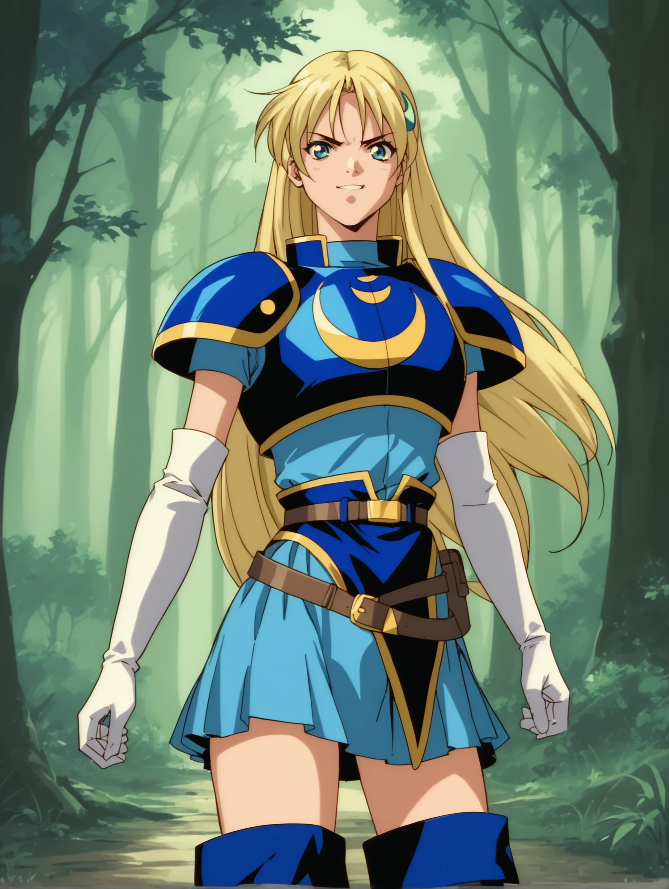 sharon, crescent hair ornament, white elbow gloves, blue dress, breastplate, belt, faulds, thigh bootssharon, crescent hair ornament, white elbow gloves, blue dress, bare shoulders, belt, faulds, thigh bootssharon, crescent hair ornament, white elbow gloves, blue dress, bare shoulders, open clothes, no bra