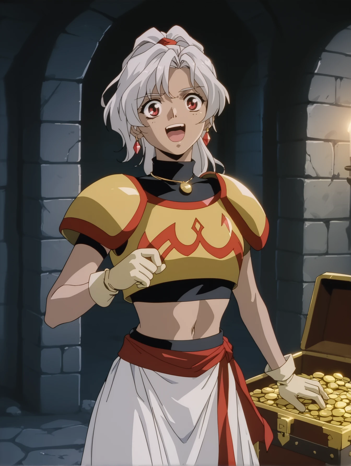 r1taw0rd, necklace, gloves, earrings, turtleneck crop top, midriff, pauldrons, white skirtr1taw0rd, necklace, turtleneck crop top, black shirt, sleeveless turtleneck, bare shoulders, midriff, white skirt