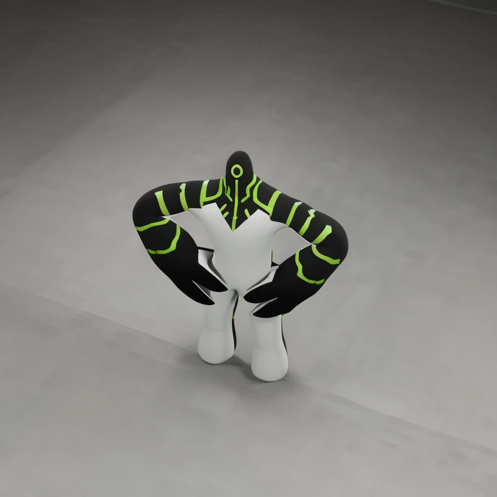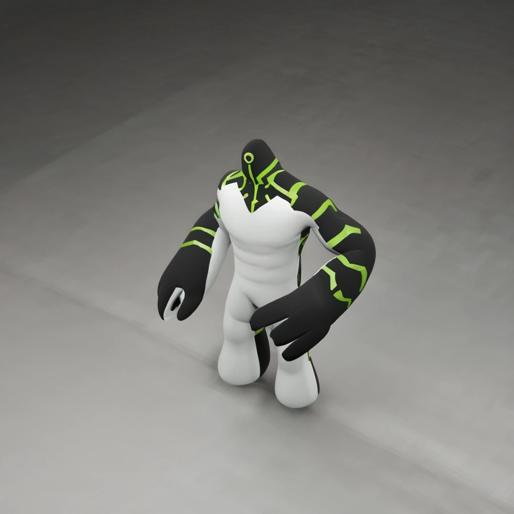 alien, Upgrade_ben10, No face, black and white body, big hands, green stripes,