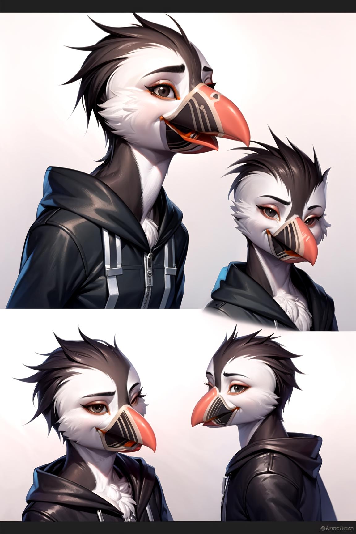 Use tags: anthro, puffin, beak, winged-arms, wings