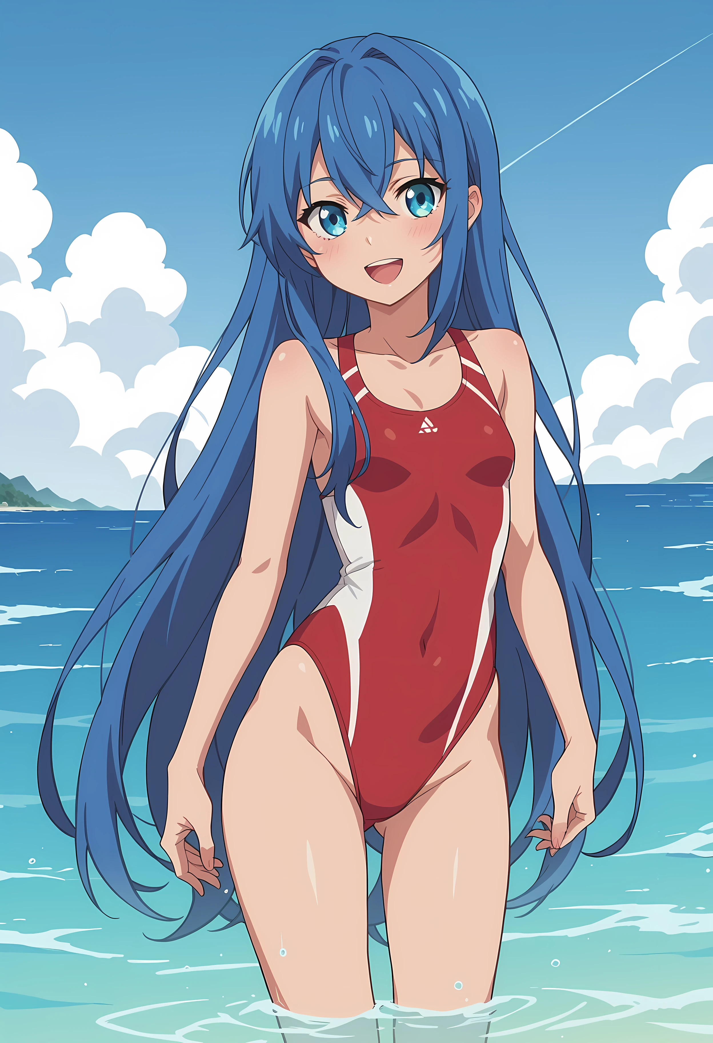 Astarte, 1girl, blue hair, very long hair, blue eyes,