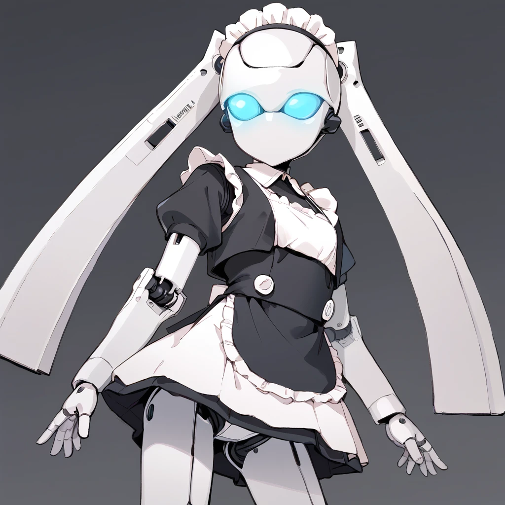 drossel, twintails, long hair, white hair, glowing eyes, blue eyes, no mouth, humanoid robot, robot, joints, android, science fiction,