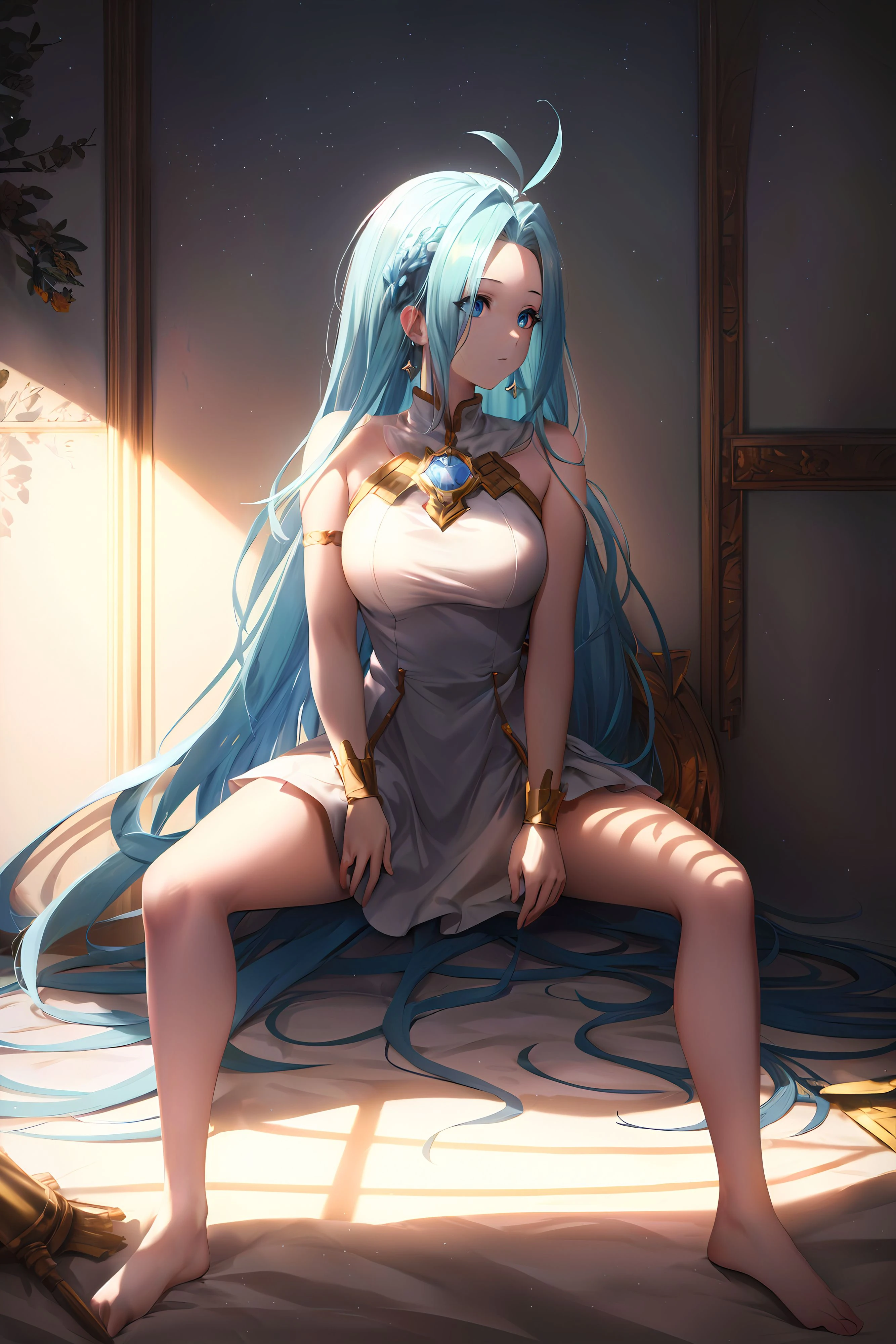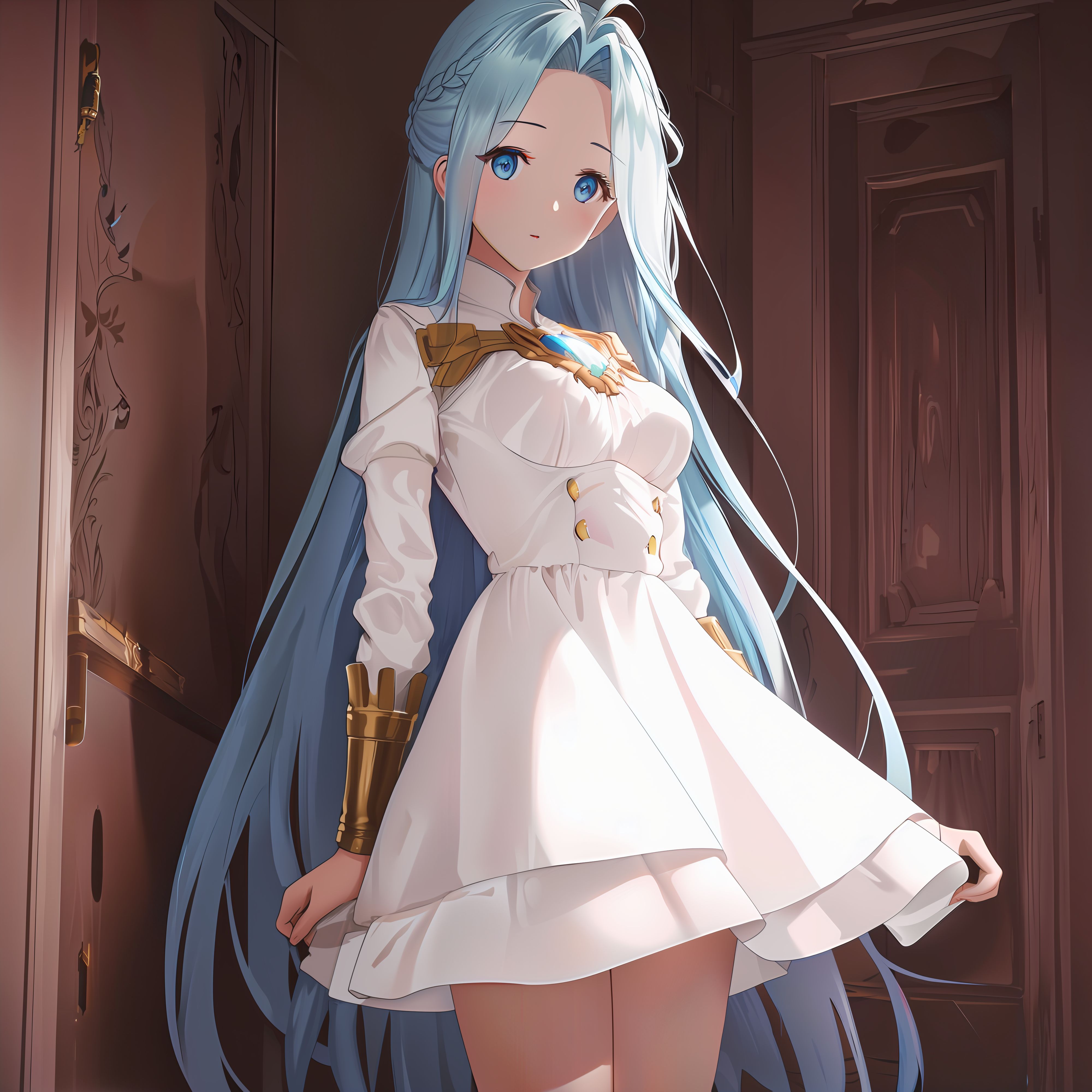 Detailed: I recommend a weight of 0.6 to 11girl, lyria, (ahoge), blue eyes, blue hair, very long hair, (white dress) works well as a prompt.