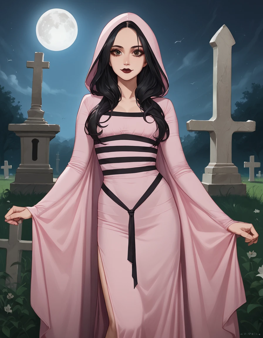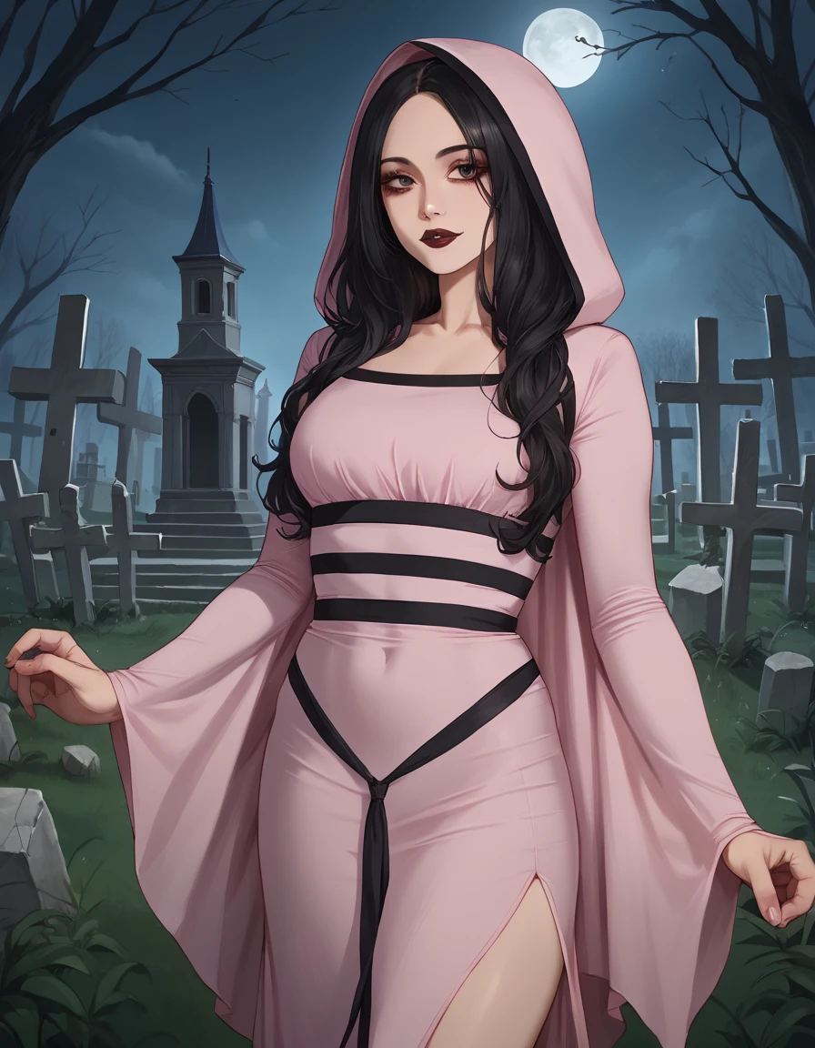 hud_lly_mnstr, pink dress, long sleeves, hood