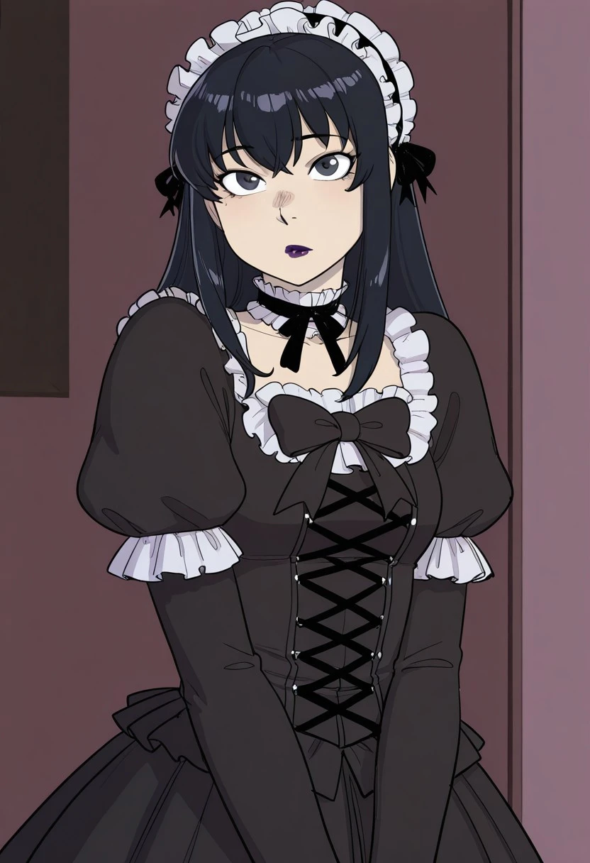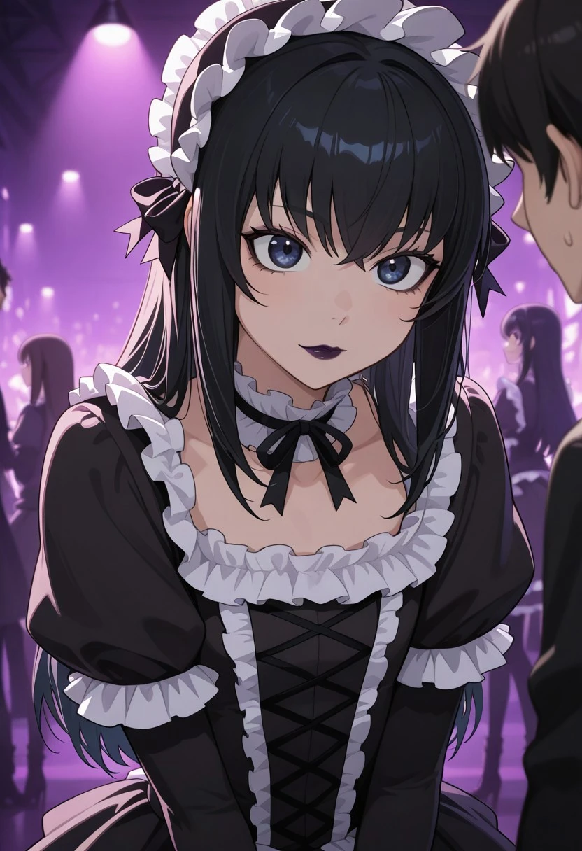 useful tags: kei yuuki, yuuki kei, \(moyashimon\), black hair, dark blue eyes, goth, gothic fashion, black eyeliner, dark purple lipstick, otoko no ko, 1boy, long hair, lipstick, crossdressing, makeup,