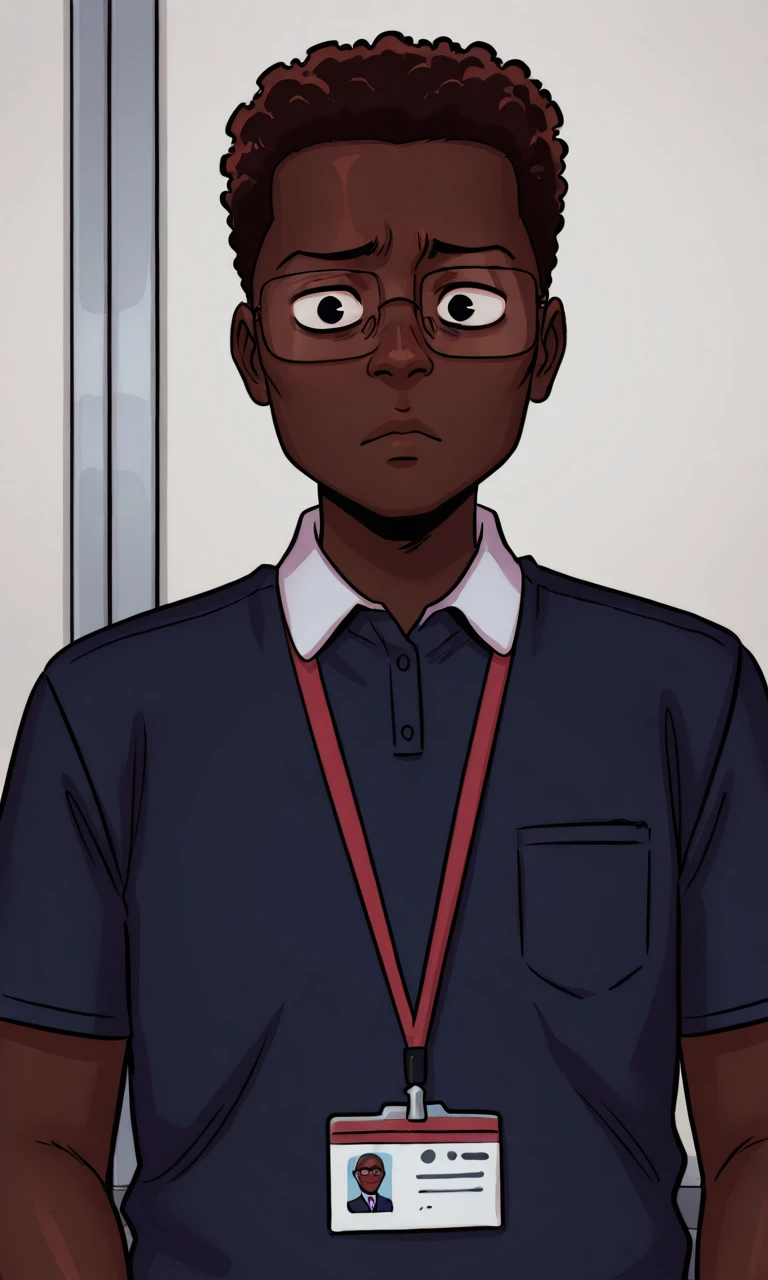 desmondnotzackforwork, very short hair, brown hair, black eyes, afro, very dark skin