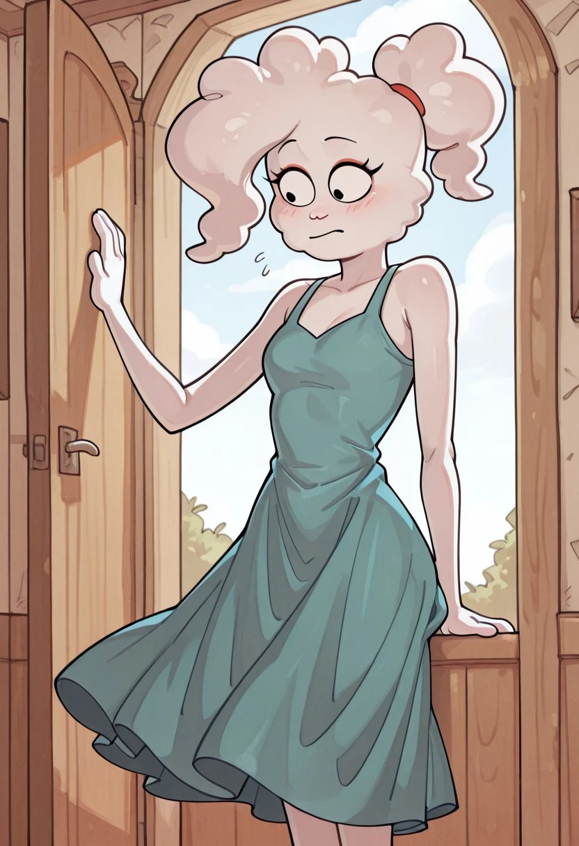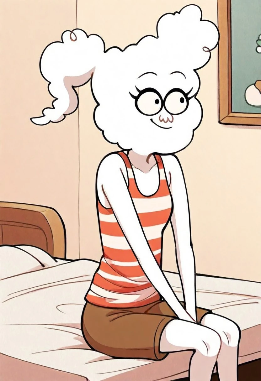 cloudyjayshow,1girl,anthro, air humanoid, elemental humanoid, cloud humanoid, air creature,white skin,white hair, black eyes,