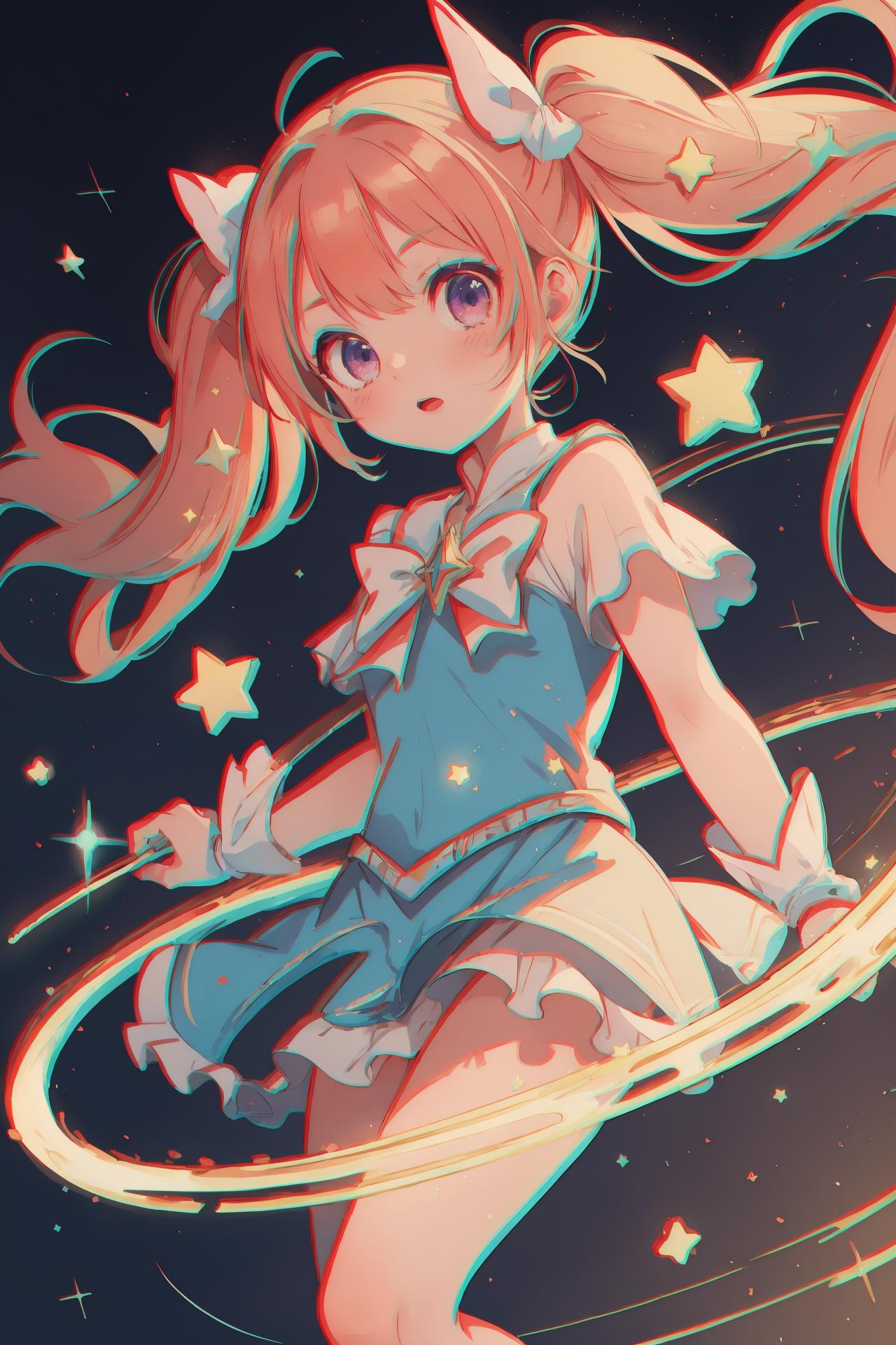 This is Lora with imitate anaglyph 3D effect, which simulates the ?????-eye 3D effect of red and cyan around the characters.