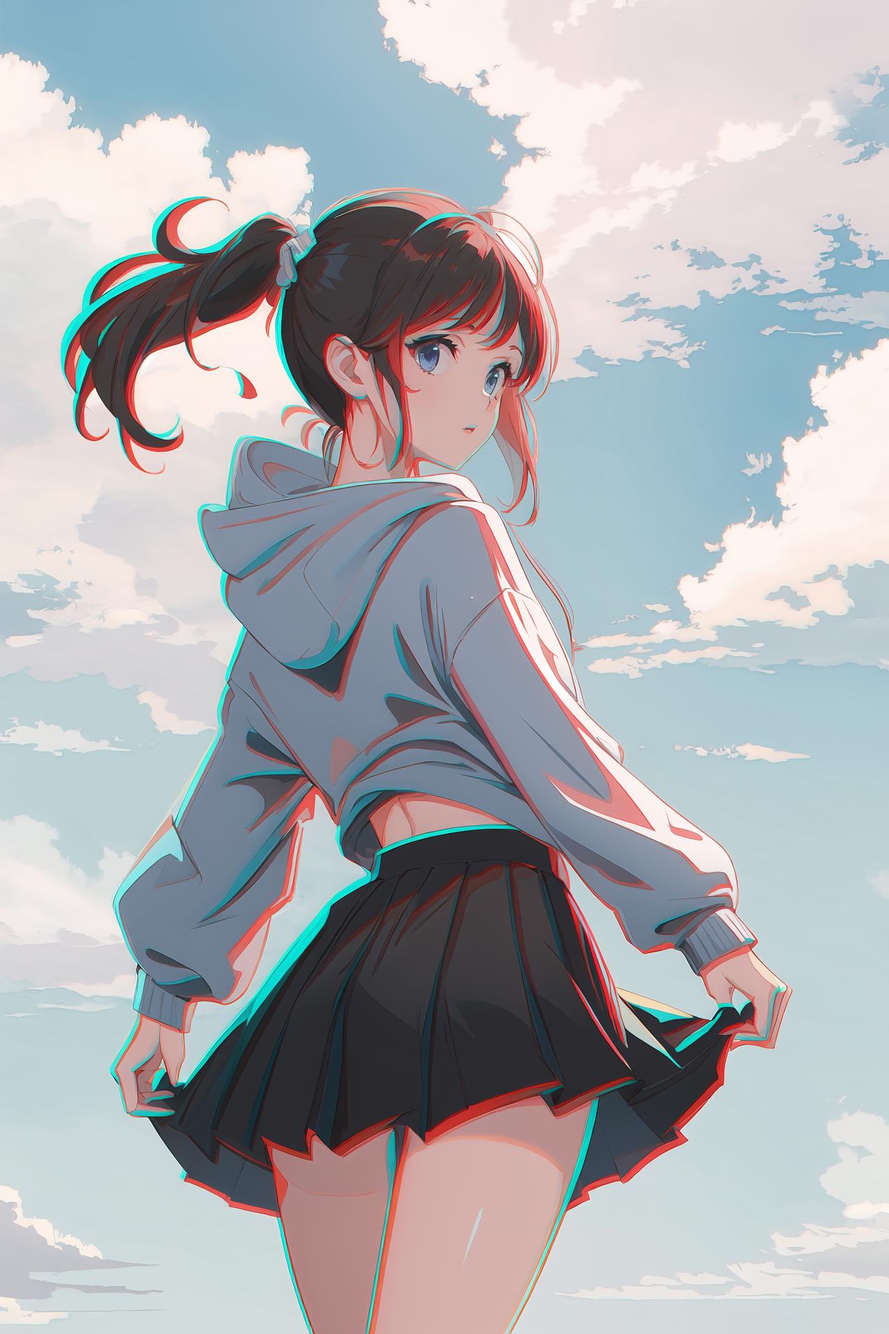 这是一个仿立体3D效果的 Lora,在人物周围模拟红色与青色的裸眼3D效果。