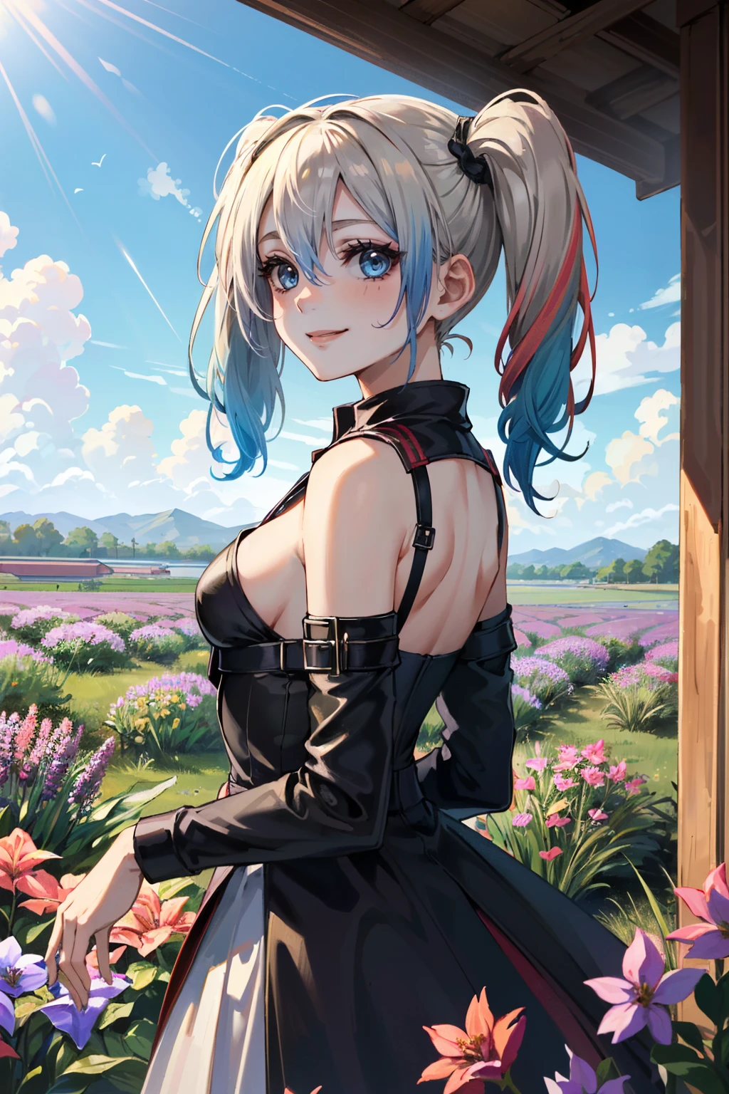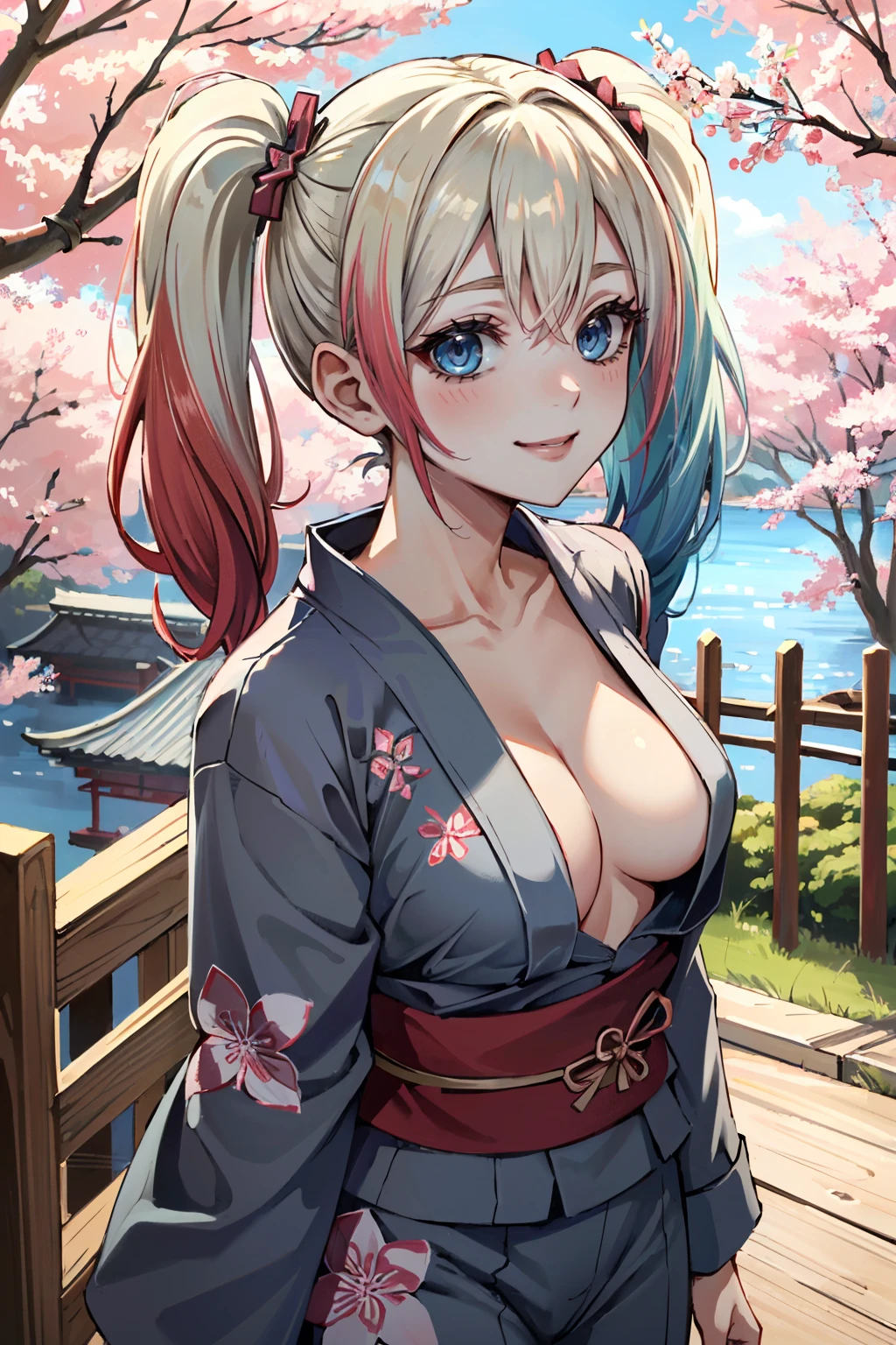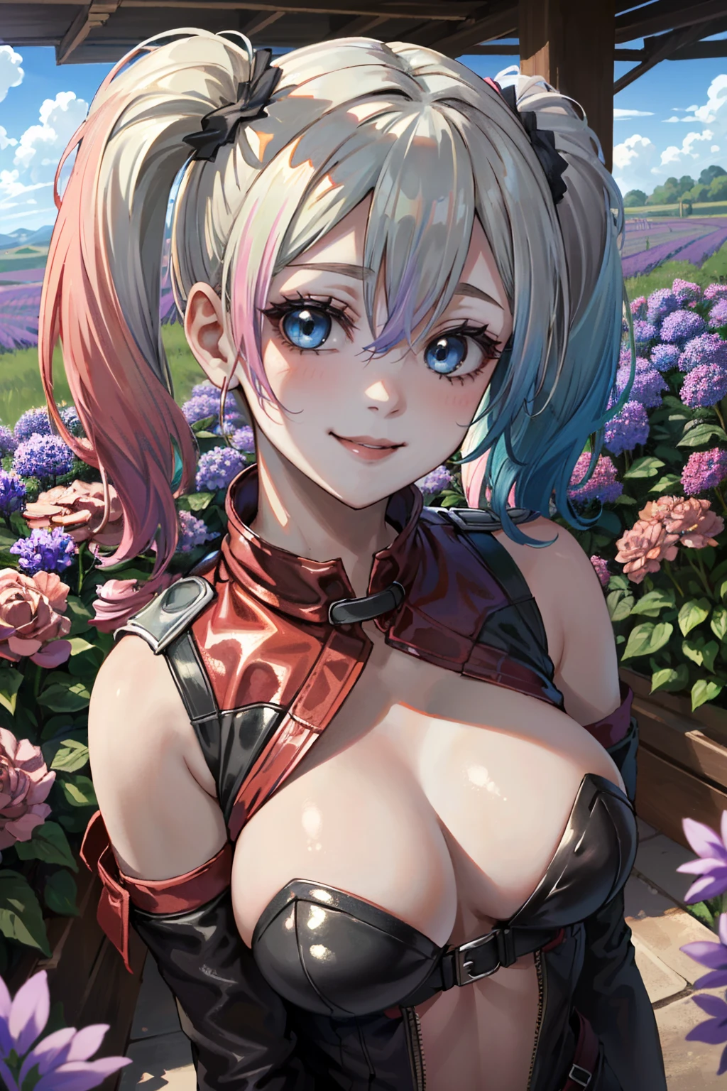 I2HQuinn, 1girl, twintails, multicolored hair, blonde hair, blue eyes