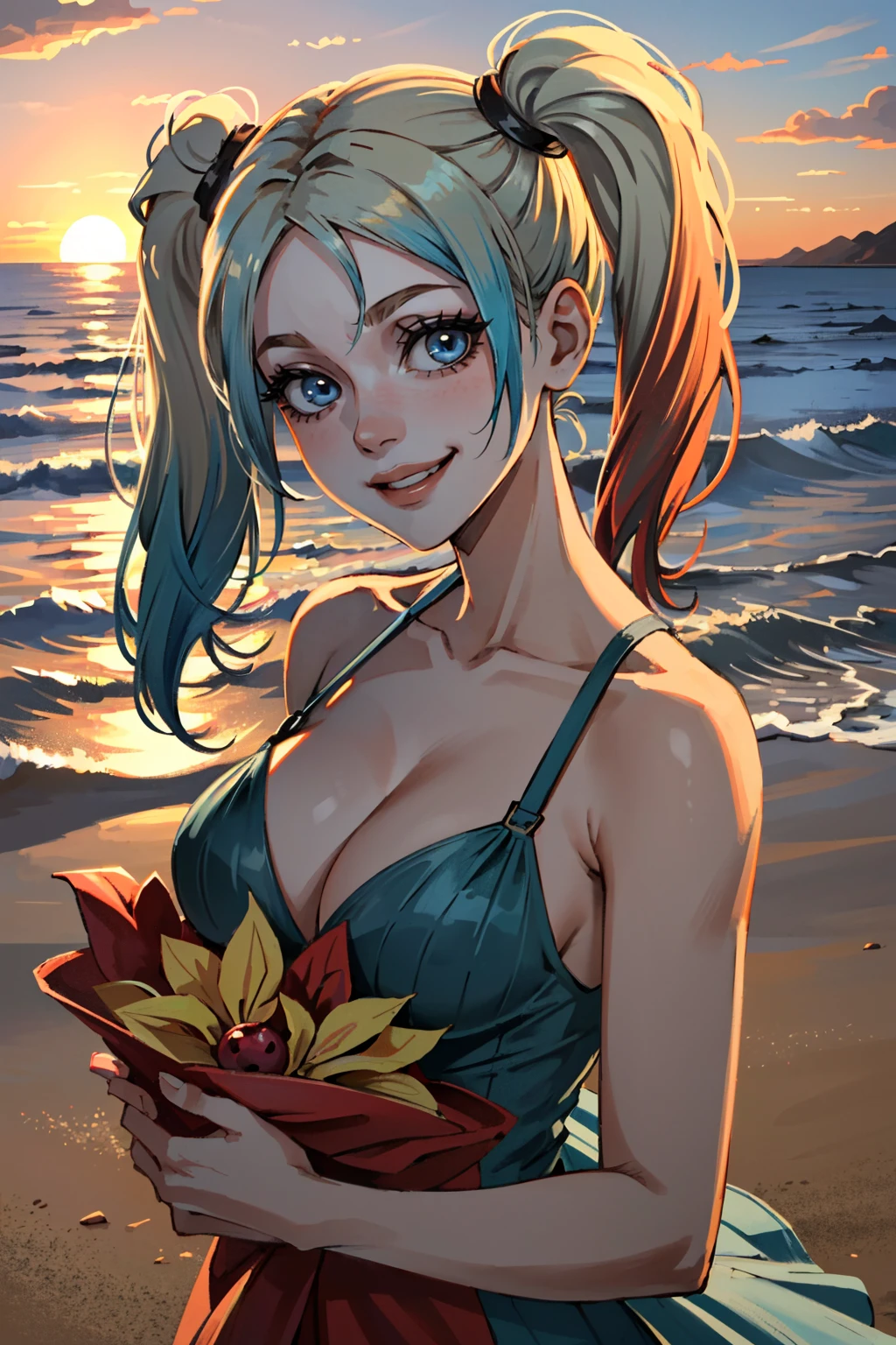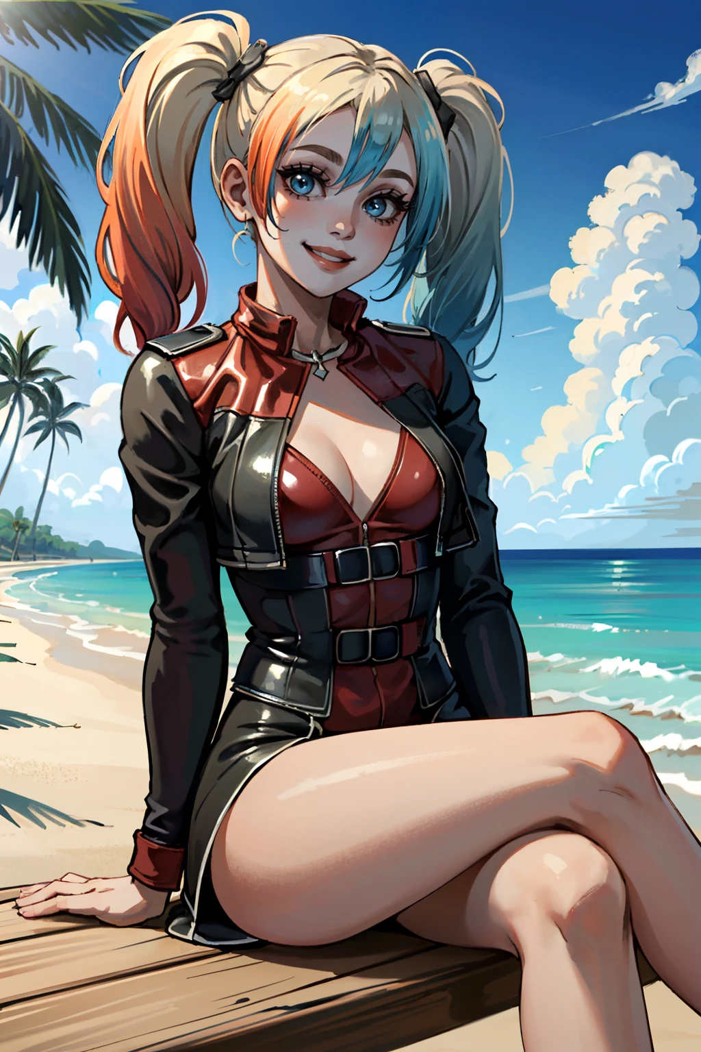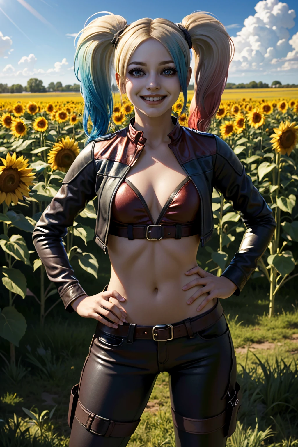 I2HQuinn, 1girl, twintails, multicolored hair, blonde hair, blue eyes