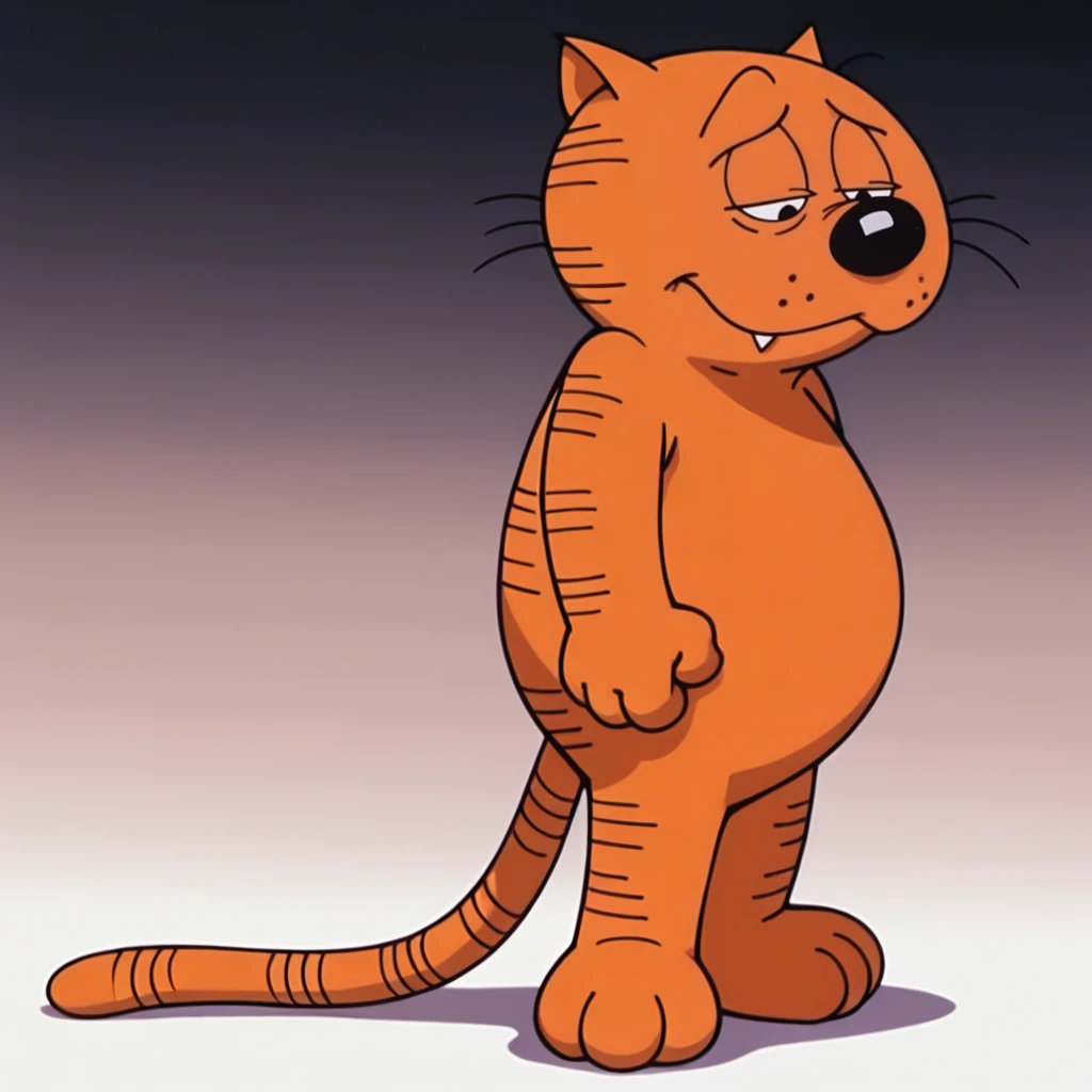 1boy, male, furry, anthro, cat, solo, orange fur, striped fur, black eyes, black nose, whiskers, fang, cat ears, tail