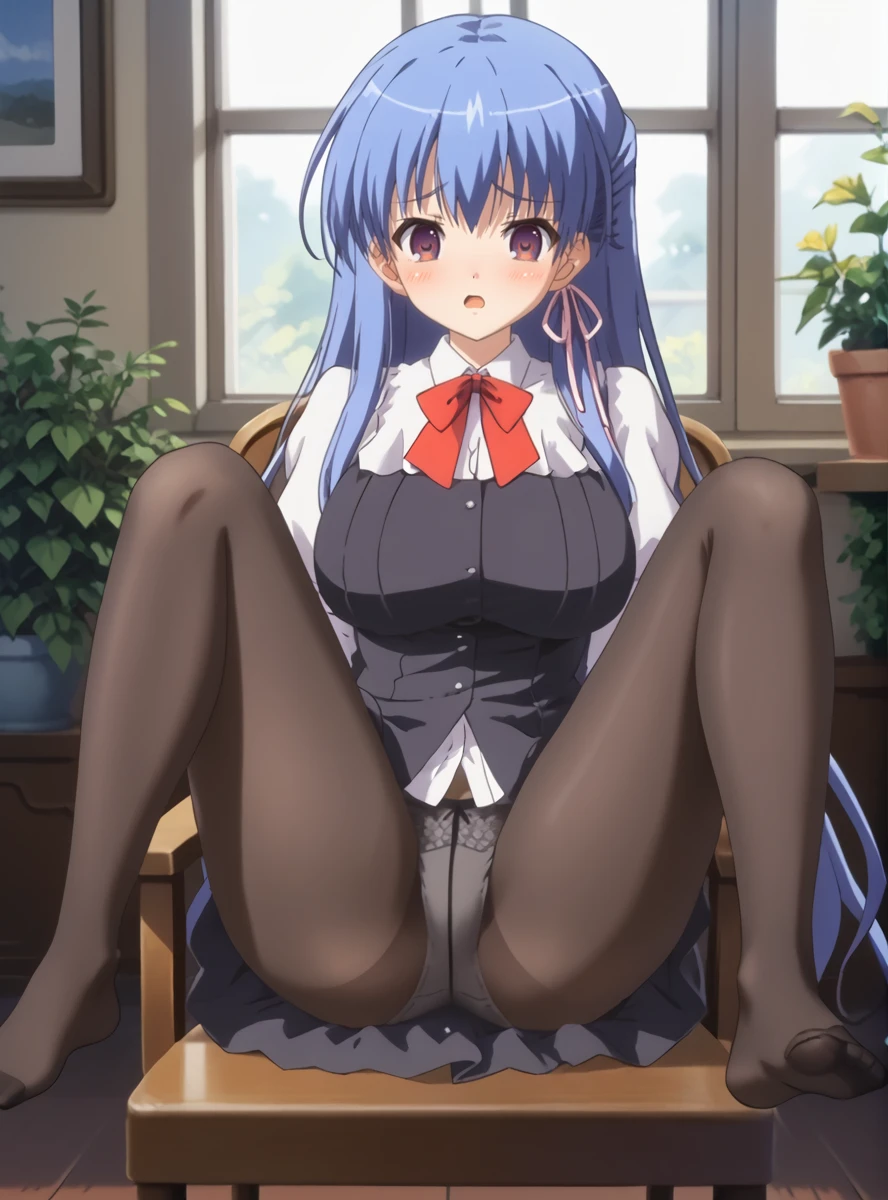 kuonji otoha, 1girl, blue hair, long hair, purple eyes, large breasts
