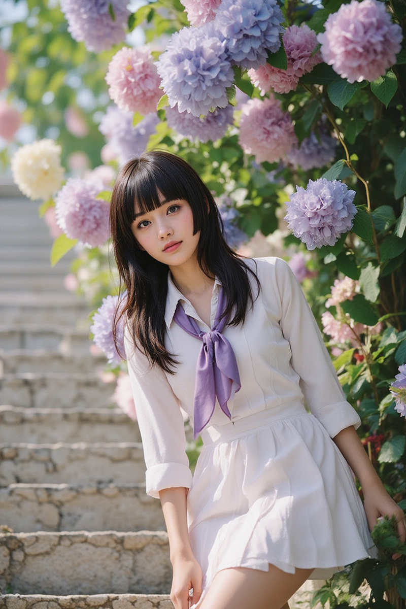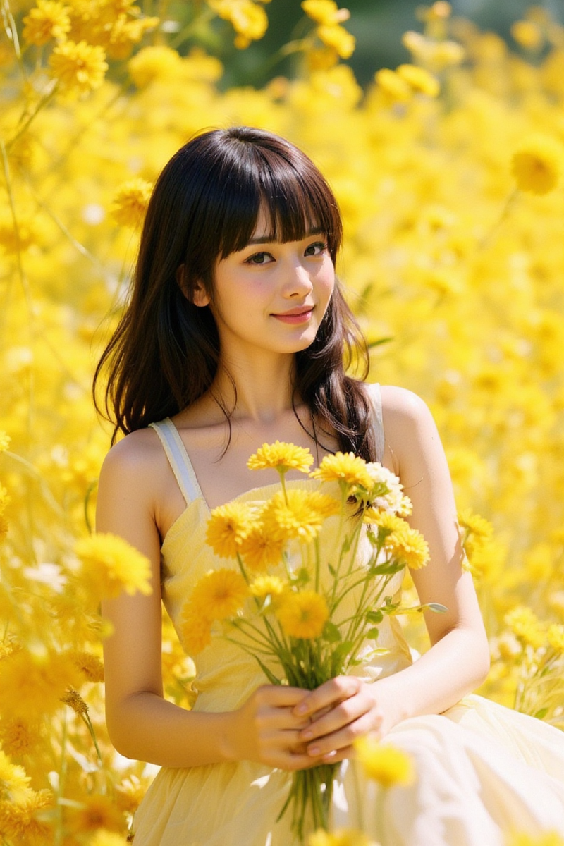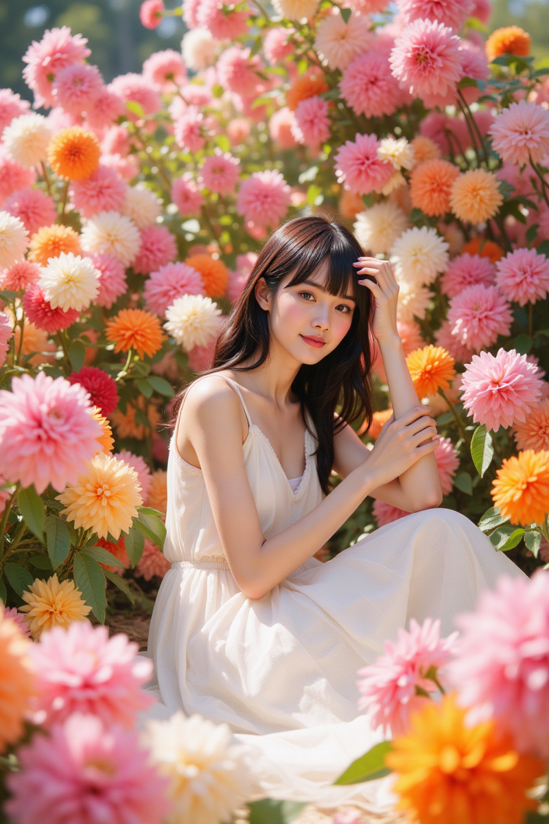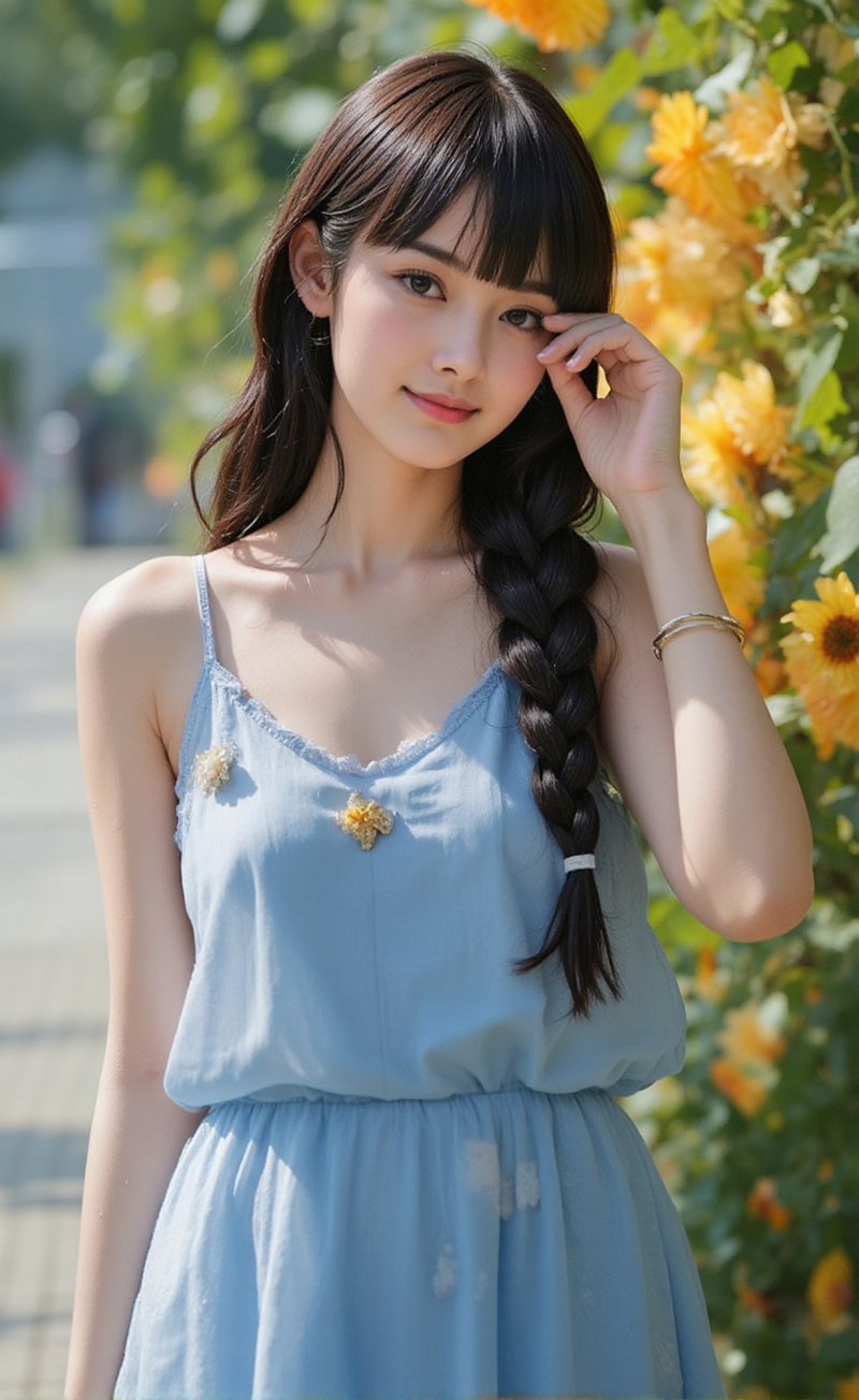 luongthuykhe, a young Asian woman, 18 years old, is centered in the image. She has the himecut hairstyle, long, straight, black hair with bangs and a pleasant expression. She is wearing a traditional white, close-fitting Vietnamese Ao Dai, a long, flowing dress, and holds a book featuring a portrait. Her body posture is relaxed and upright. The background is out of focus, showcasing a blurred outdoor setting with greenery. The lighting is natural and bright, casting soft shadows. The image's overall style is a candid portrait, with a natural and soft aesthetic. The composition is straightforward, placing the subject slightly off-center. The woman is facing directly at the camera and her gaze is neutral. The colors are primarily muted tones of white, light green, and brown. The overall atmosphere is serene and peaceful.