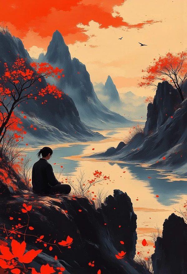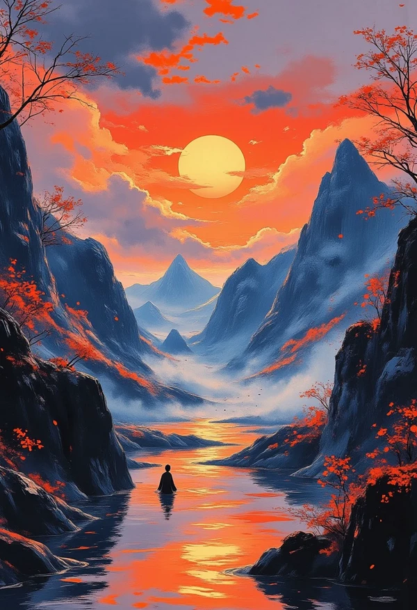 Fine-tuned Flux Lora on Japanese style reference. Defaults to traditional red, grey and blue.