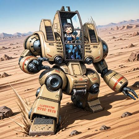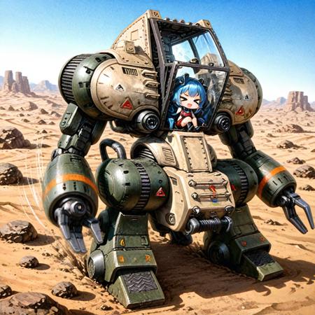 LoRA作成時のベースモデルは「WAI-NSFW-illustrious-SDXL V5」です。 「搭乗サンプル」 1mecha, WM_Trad11-Type, Running, Action pose, chibi, 1girl,solo, (girl is sitting in cockpit), >_<, :d, (motion blur, motion line, sense of speed), rocky desert,rock,horizon,day,