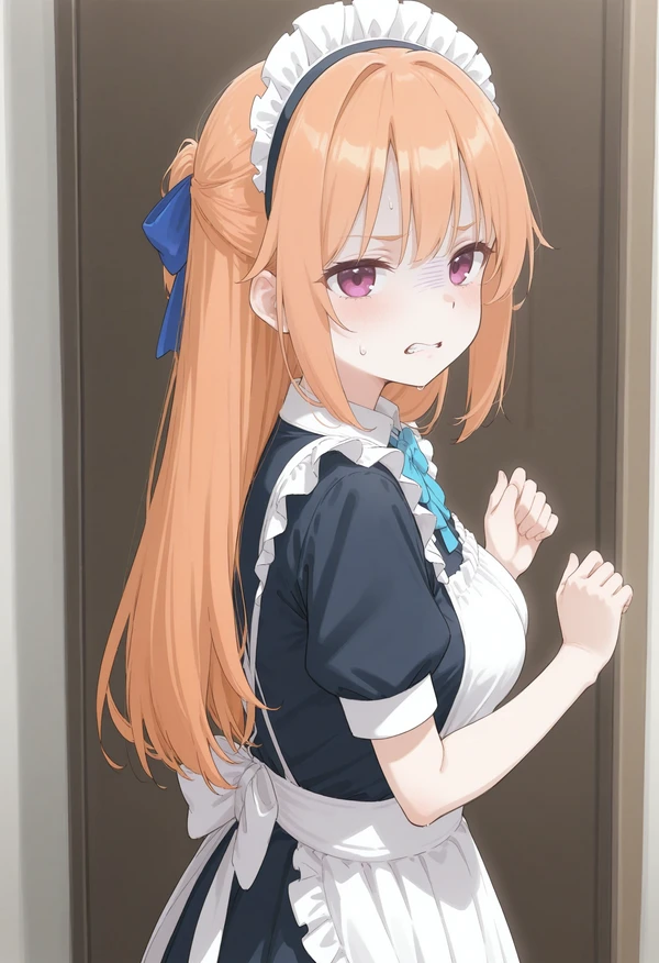 The trigger word alone is only an expression or a pose, but many illustrations often show a cartoon-like dark shadow falling on the face, empty eyes with no pupils, and unconsciously defensive hand movements, so hands up, sweatdrop, looking at viewer, shaded face, turn pale, jitome, jitters, and so on. face, turn pale, jitome, disgust, gloom (expression), d:, frown, empty eyes, no pupils. You can also add other effects such as mouth opening, teeth clenching, etc., depending on the desired reaction.